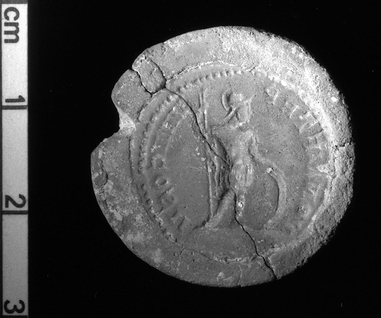 (phase 2) Au fond du fossé, un remplissage dû au ruissellement, se caractérisait par des couches de limon argileux. Intercalé entre les couches de limon, à la base de la contrescarpe, un empierrement d'une longueur de 6 m ayant pu servir d'accès aménagé s'étendait en direction du centre du fossé.