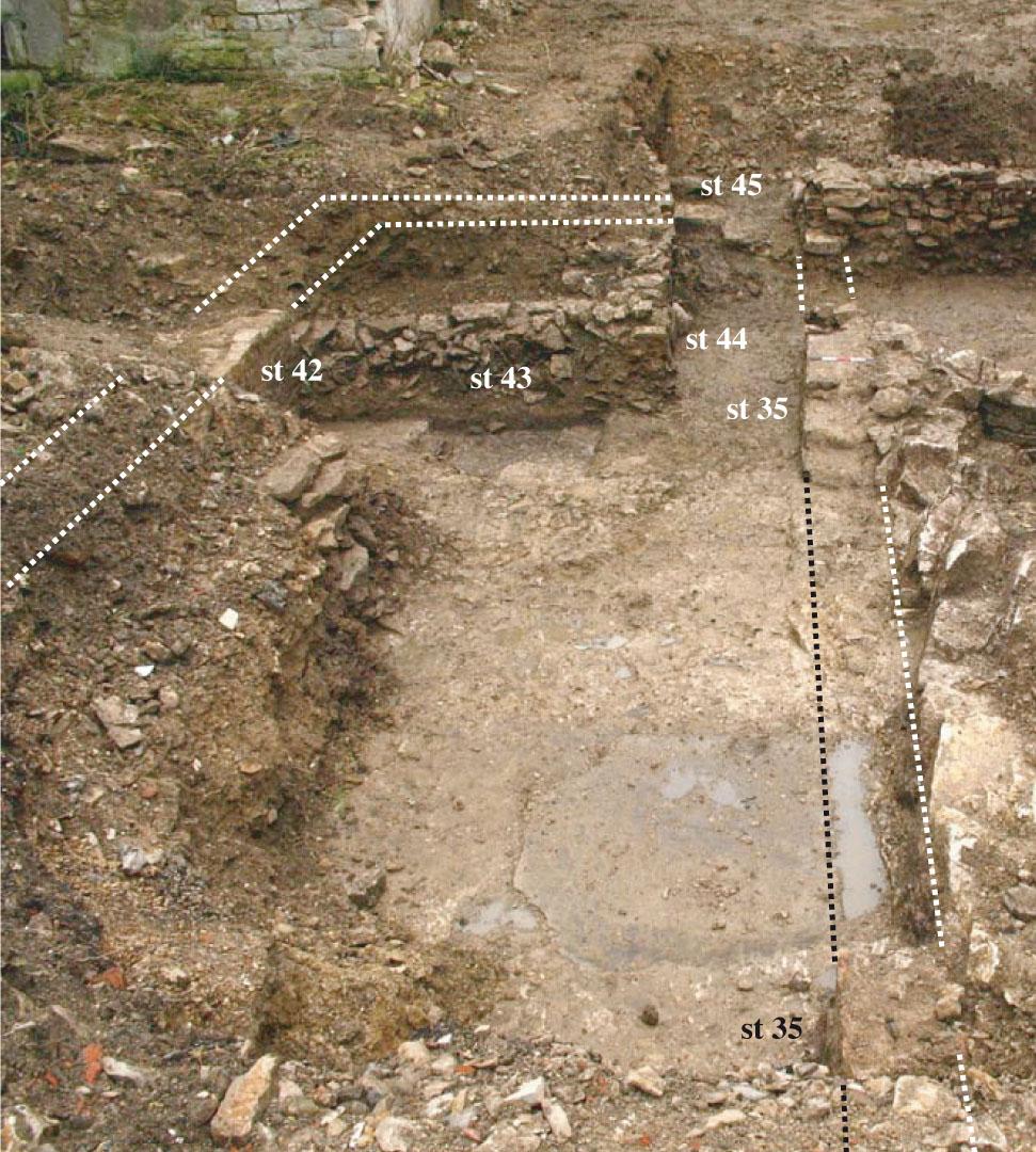 Entre ces jardins qui constituent la dernière occupation antique et la première occupation médiévale au XIIIe siècle, précédant la mise en place d'un nouveau lotissement du secteur, aucune trace d'activité humaine n'a été observée.