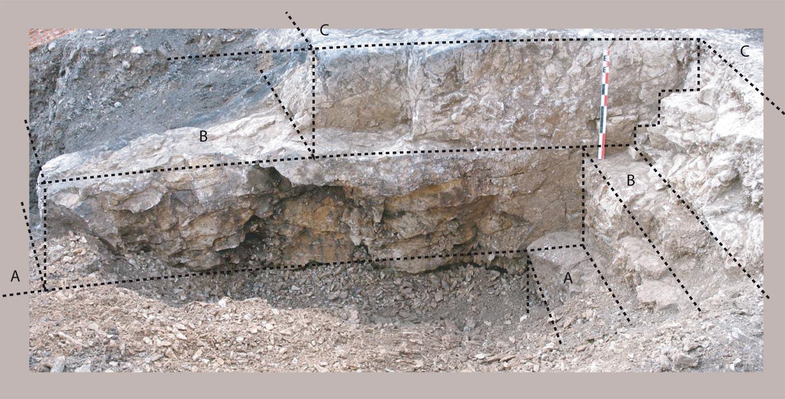 Pour la première fois, une zone de production de matériaux de construction a pu être en partie observée dans la ville antique. Cette activité se traduit dès le début du Ier siècle de notre ère par l'exploitation d'une carrière d'extraction de moellons calcaires, caractérisée par la présence de fronts de taille (paroi rocheuse verticale marquant l'extrémité d'une carrière en cours d'exploitation), de sols de carrière (surface rocheuse horizontale marquant la limite inférieure de la carrière en cours d'exploitation), de murs d'ateliers de carriers ou de murets retenant des remblais constitués de hagues (déchets de taille).