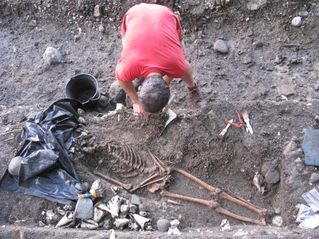 Anse Bellay (Martinique), 2013, relevé topographique des sépultures d'un cimetière d'esclaves.