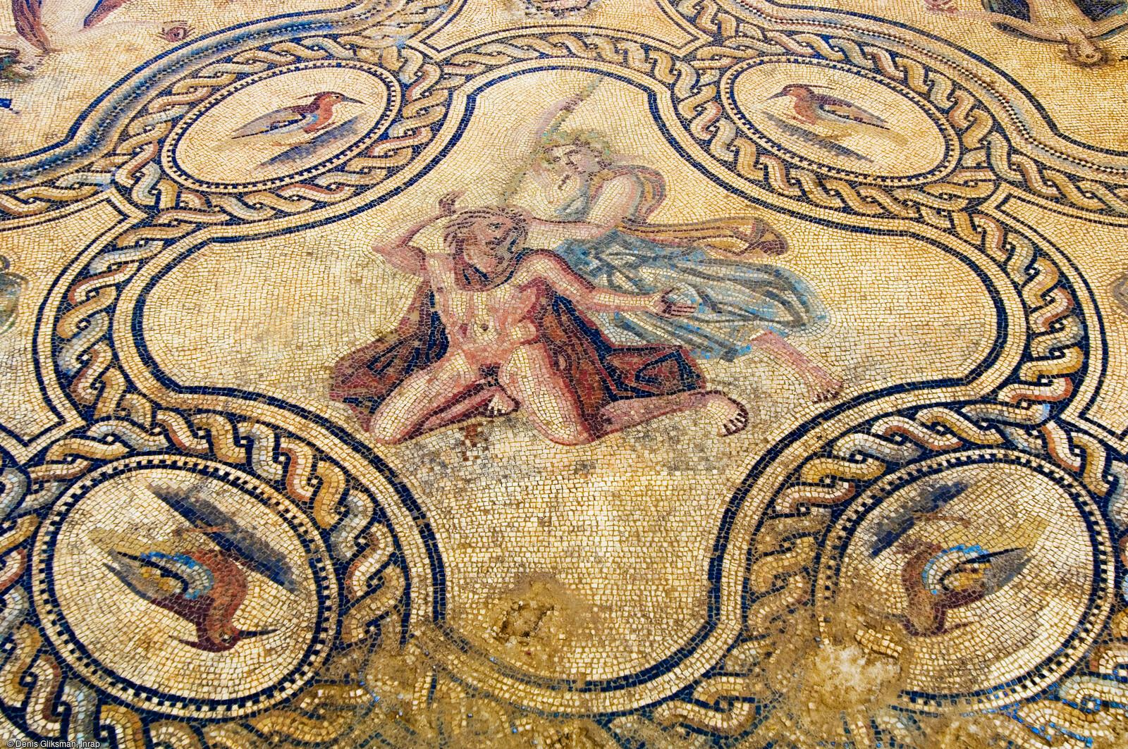 Les sols des riches demeures et de certains bâtiments publics sont dallés de marbre, de calcaire ou d’autres matériaux souvent venus de très loin. Les pièces d’apparat sont pavées de mosaïques, parfois très simples, bicolores (généralement en noir et blanc) et géométriques. Mais on trouve aussi de grandes compositions en couleur, représentant des scènes mythologiques, de chasse ou de la vie quotidienne, comme celle de Lillebonne en Normandie, qui illustre les différentes étapes de la chasse. Un autre pavement, conservé au Musée d'archéologie nationale de Saint-Germain-en-Laye, décrit les activités agricoles et les fêtes saisonnières. Ses différents tableaux s’articulent autour de quatre médaillons centraux où sont personnifiées les saisons : une femme emmitouflée sur un sanglier (hiver), un Amour nu sur un taureau (printemps), un Amour nu sur un lion (été), et un Amour nu sur un tigre (Automne).
