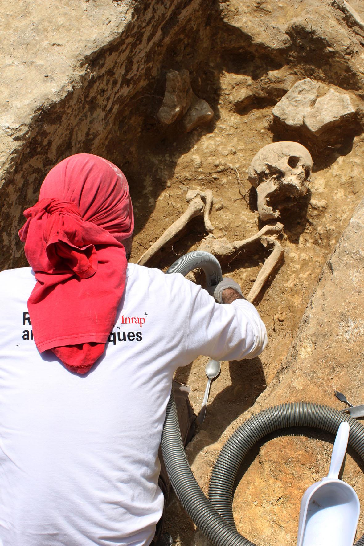 Les fouilles menées par l’Inrap au niveau du carrefour entre la rue Sadi-Carnot et le boulevard Joliot-Curie, à Nanterre, ont révélé les vestiges d’une nécropole gallo-romaine. Ils ont été découverts aux environs de la place de la Boule, carrefour important de la ville.