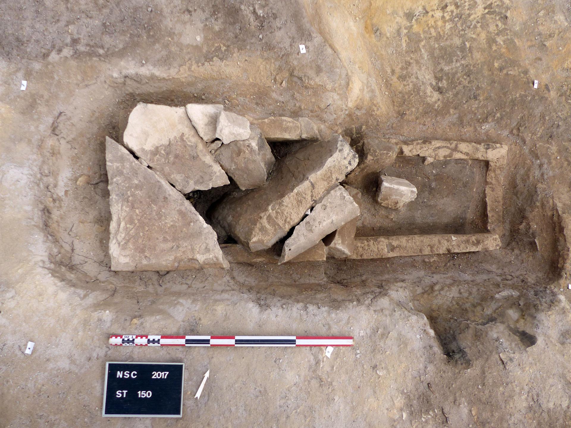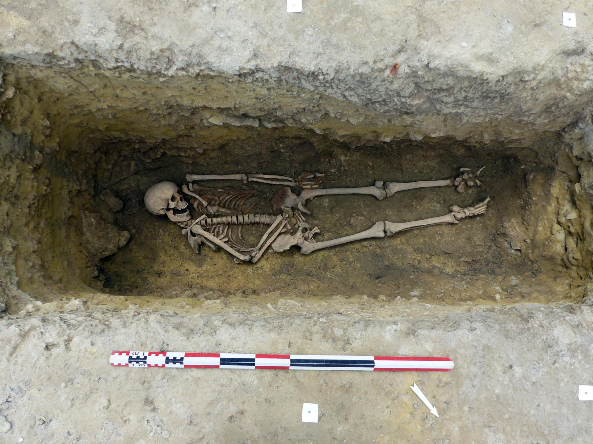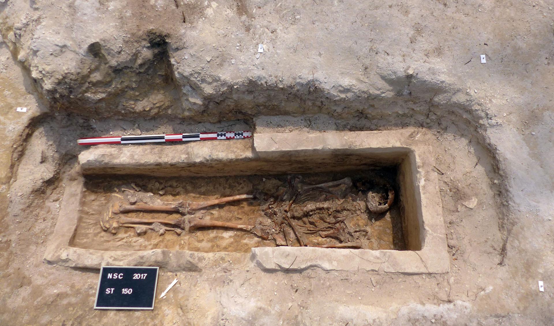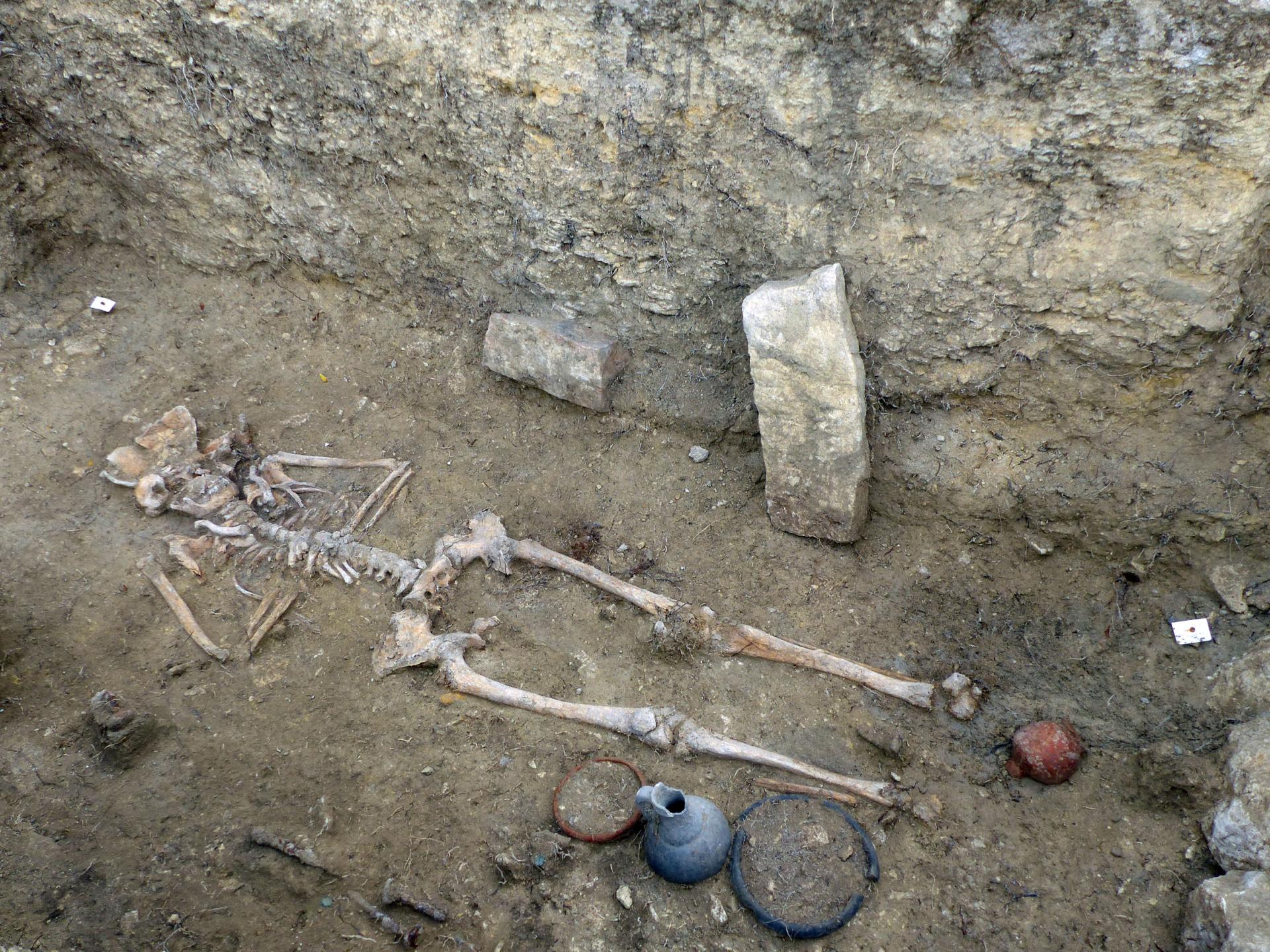 Les céramiques complètes déposées au pied des corps ont été rapidement expertisées et indiqueraient une fourchette chronologique entre la seconde moitié du IIIe et la fin du IVe siècle de notre ère (Bas-Empire). La présence de céramique du Ier et IIe siècle de notre ère dans le comblement des fosses sépulcrales témoigne d'une occupation plus ancienne sur le secteur. Des datations C14 réparties sur l’ensemble de la nécropole et l’étude exhaustive du mobilier d’accompagnement permettront d’affiner la durée de fonctionnement de ce cimetière antique. Par ailleurs, des études anthropologiques complexes seront entreprises pour connaître au mieux les défunts (sexe, âge, données biométriques…) et leur état sanitaire (pathologies…).