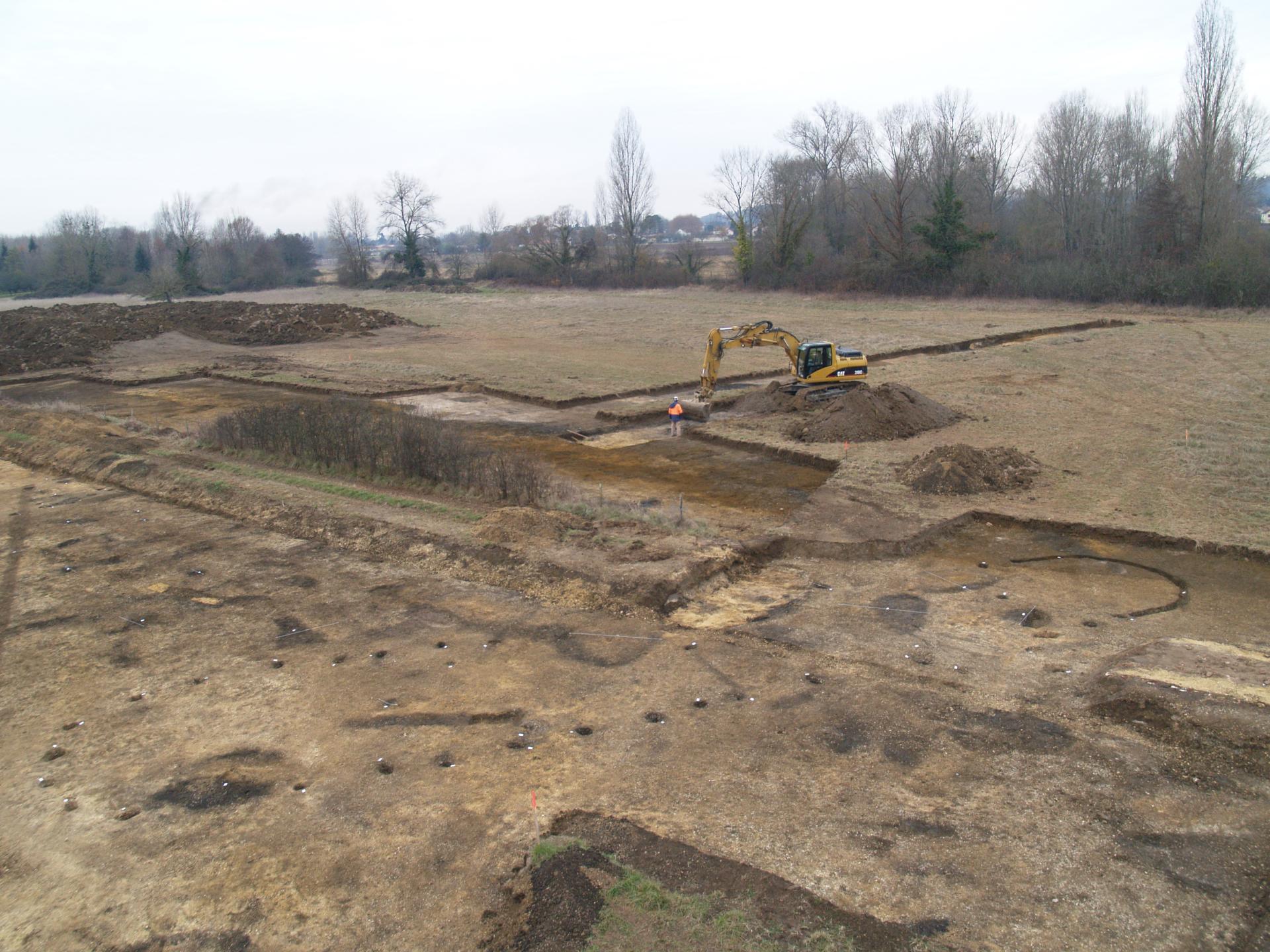 Sur un hectare et demi, plus de vingt habitations viennent combler cette lacune. Elles appartiennent toutes au Néolithique récent, vers 3500-3000 avant notre ère. Ces maisons de plan rectangulaire mais aux extrémités convexes, longues de 15 à 25 m, larges de 4 à 5 m, reposent sur des fondations de bois dont seules subsistent aujourd'hui les traces négatives. Leur toit, à double pente, était probablement réalisé en matériaux végétaux.
