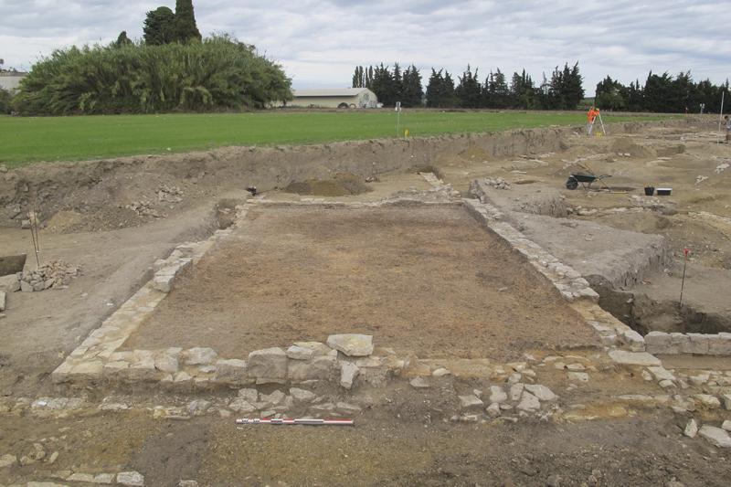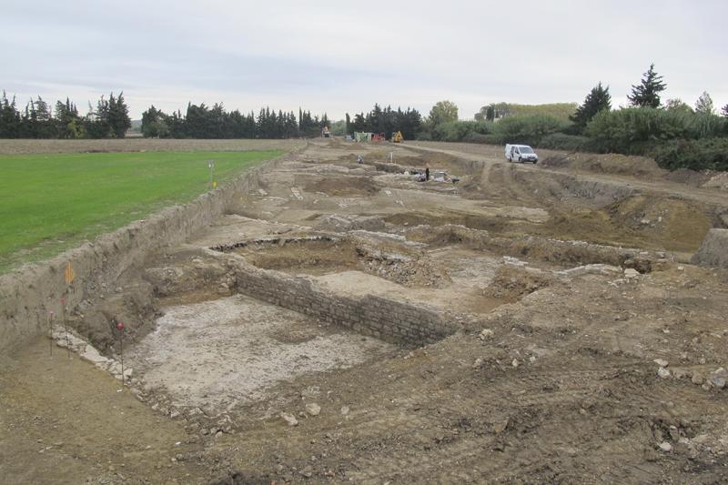 La fouille archéologique préventive, d'une superficie de 5 000 m², permet d'étudier les vestiges d'une occupation antique dans la plaine de Nîmes.