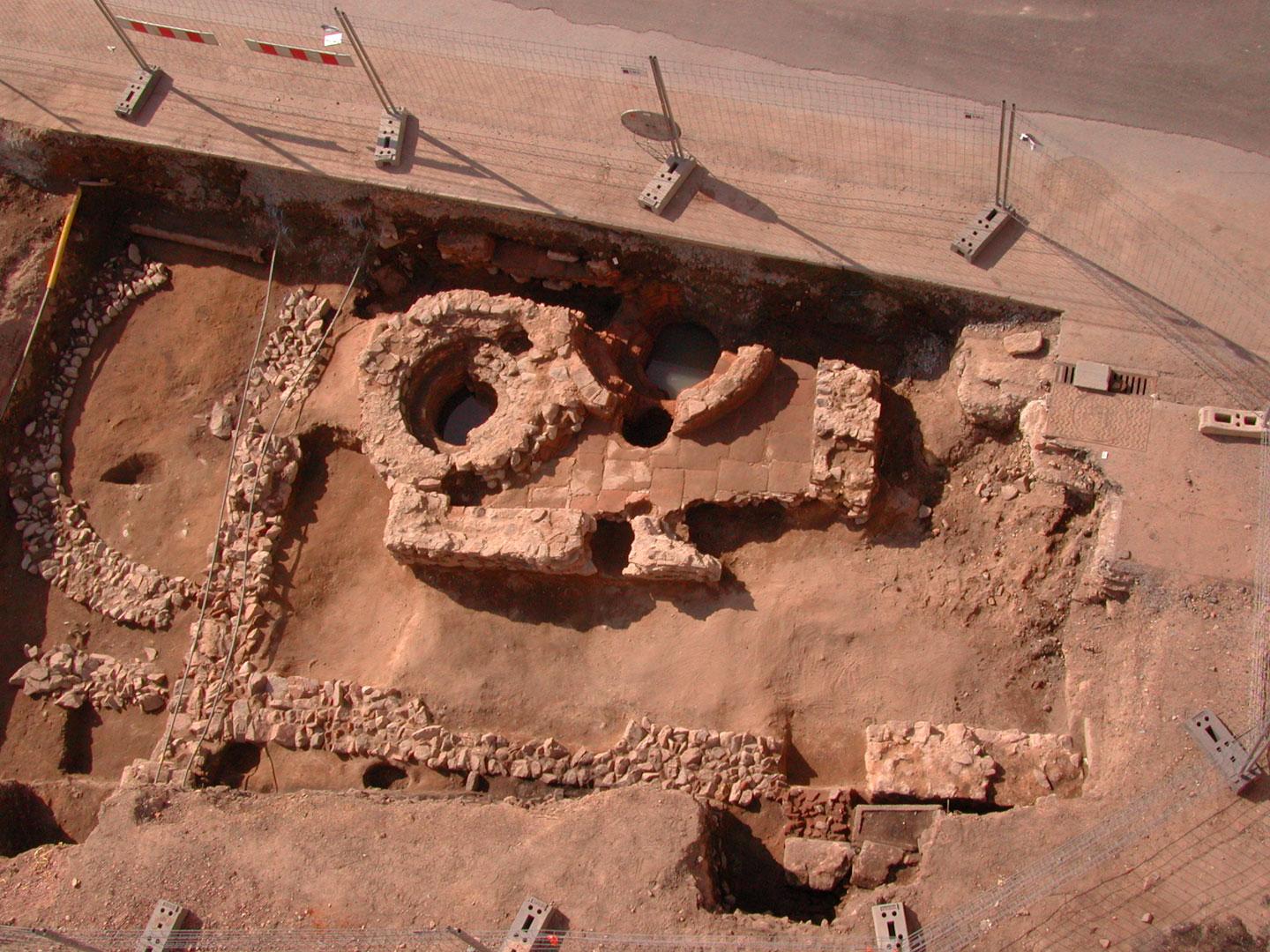 Le baptistère est implanté dans un quartier antique, situé en bordure de la grande voie nord-sud. Une rue transversale dessert des bâtiments et un atelier de potiers construits vers la fin du IIe ou le début du IIIe siècle.