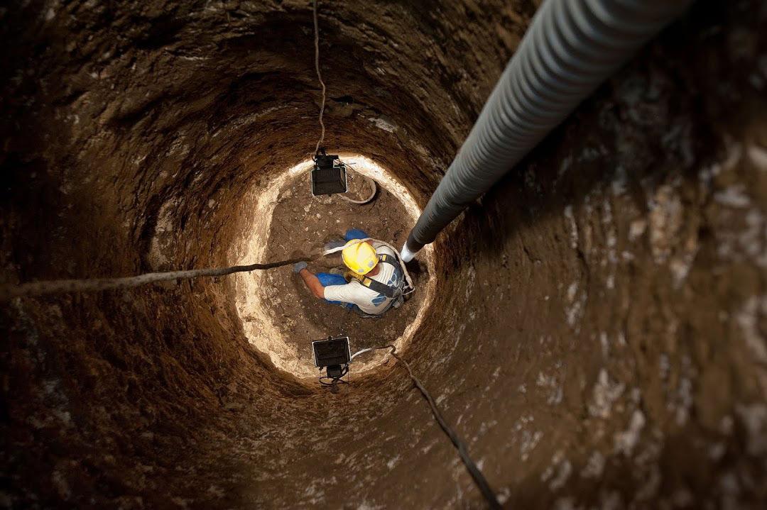 Deux puits antiques associés au temple ont été fouillés dans leurs 5 premiers mètres par l'Inrap, à l'aide d'engins mécaniques, puis par la société Archéopuits, spécialisée dans l'excavation de ce type de structures et capable d'allier exigences scientifiques et sécurité. Des puisatiers ont ainsi fouillé manuellement jusqu'au fond des puits, c'est-à-dire à 15,5 m de profondeur.