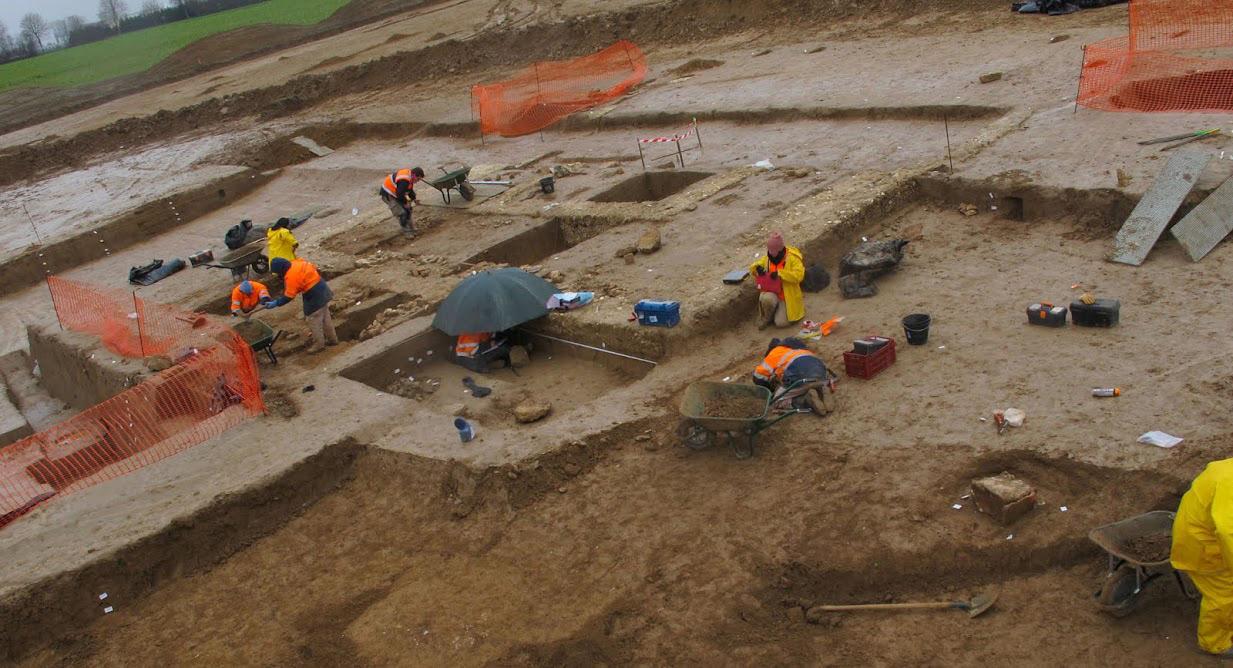 La fouille préventive a été prescrite sur le fond de vallon proprement dit et sur le plateau au nord, où avaient été repérées des structures pouvant répondre aux questionnements sur l'environnement immédiat de ce temple.