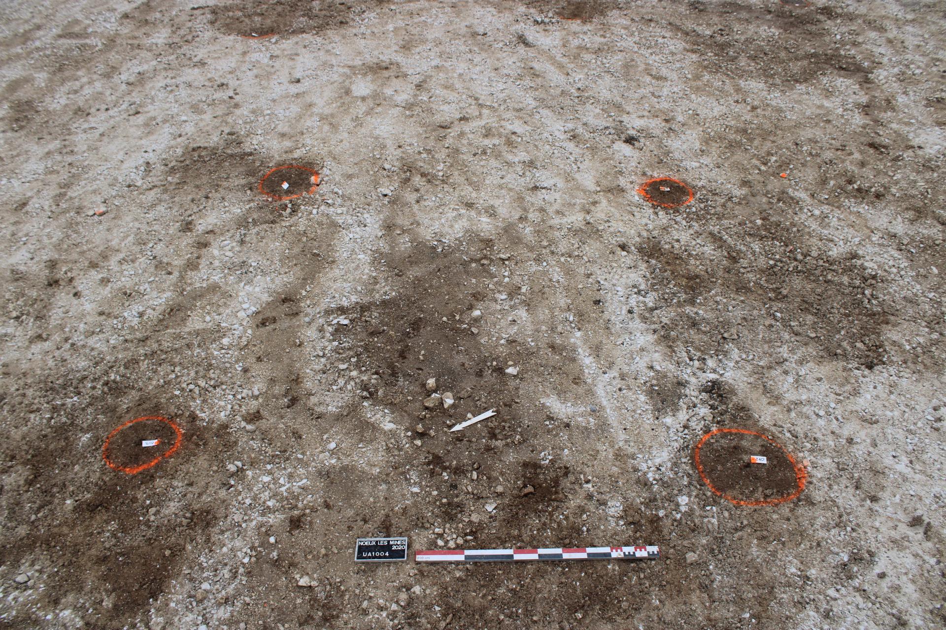 Sur une situation topographique favorable à l’implantation humaine (haut de versant exposé au nord-ouest), l’occupation de La Tène ancienne se caractérise par des empreintes (trou de poteau) de plusieurs bâtiments construits uniquement en bois (ossature), en terre (torchis pour les murs) et en végétaux (toiture).