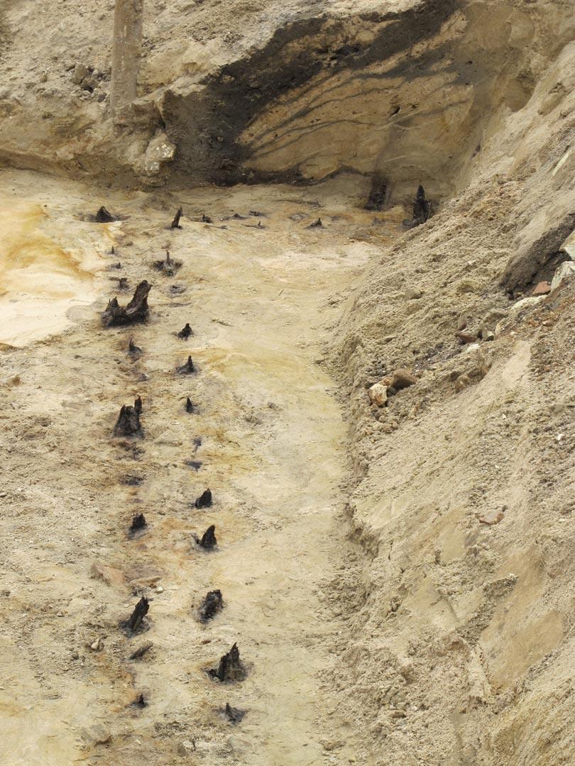 L'ensemble funéraire antique situé le long de la voie comporte 23 individus : hommes, femmes et enfants de tous âges, sans répartition spatiale particulière. La plupart des sépultures est datée du Bas-Empire (IVe siècle de notre ère), d'après le mobilier funéraire et les datations par radiocarbone.