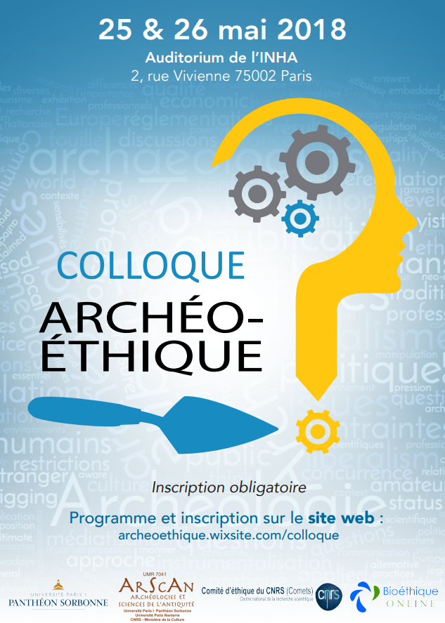 Pour assister au colloque Archéo-Éthique et participer aux discussions, il est nécessaire de vous inscrire. L'inscription est gratuite. Merci de remplir le formulaire ci-dessous et de le renvoyer à l'adresse archeo.ethique [at] univ-paris1.fr avant le 15 mai 2018.