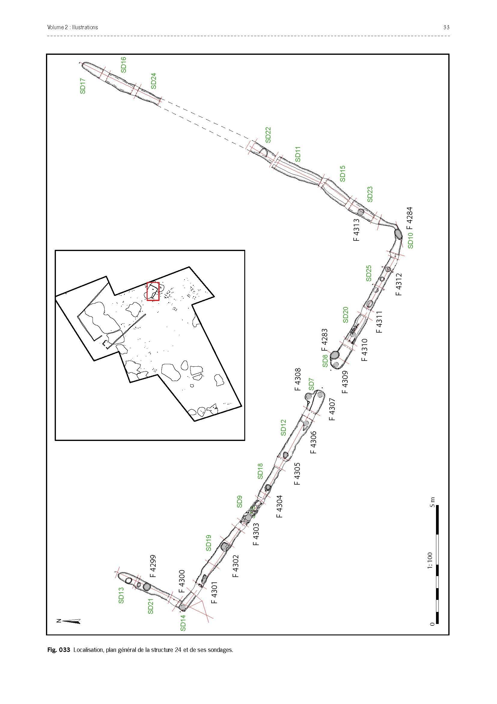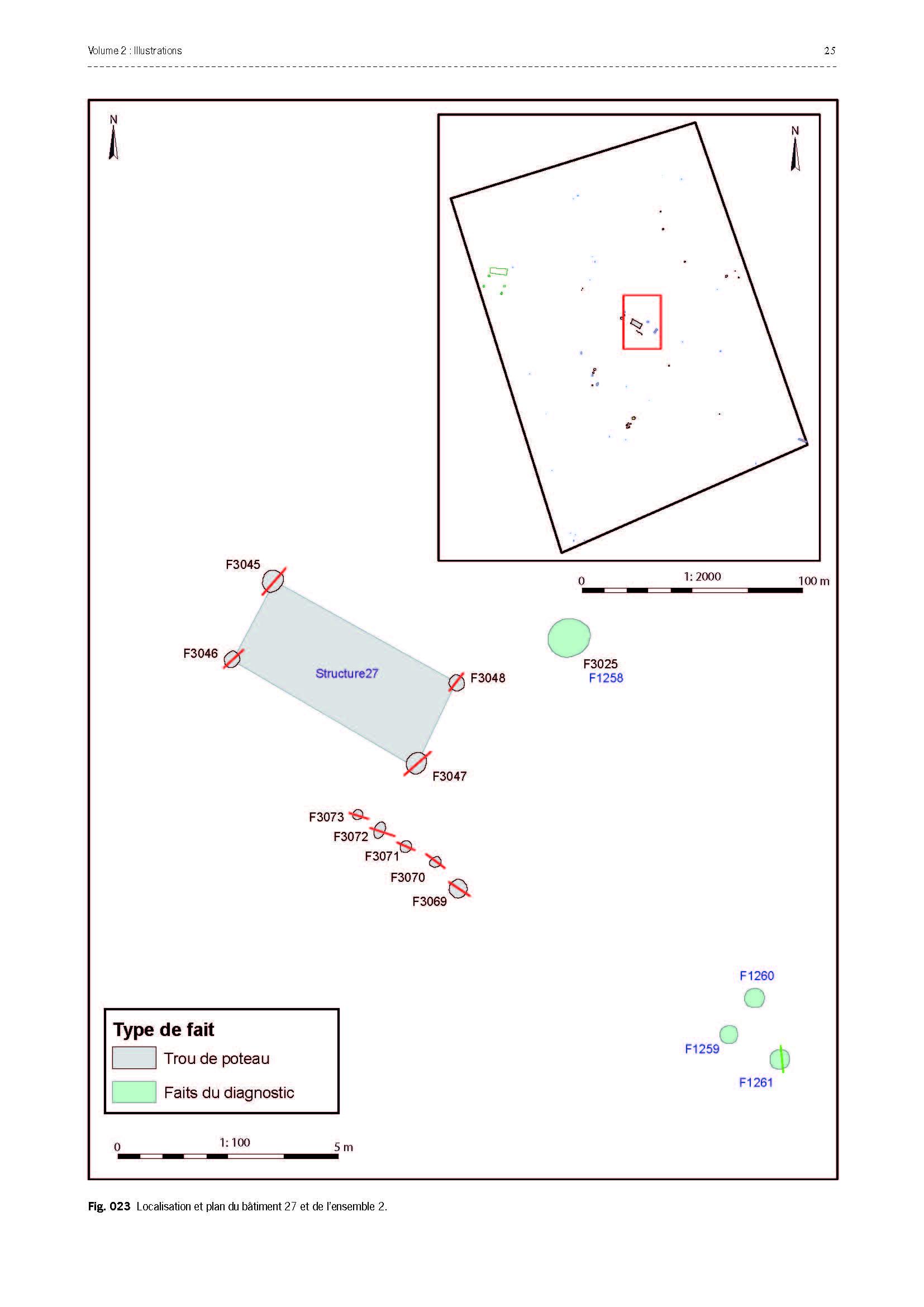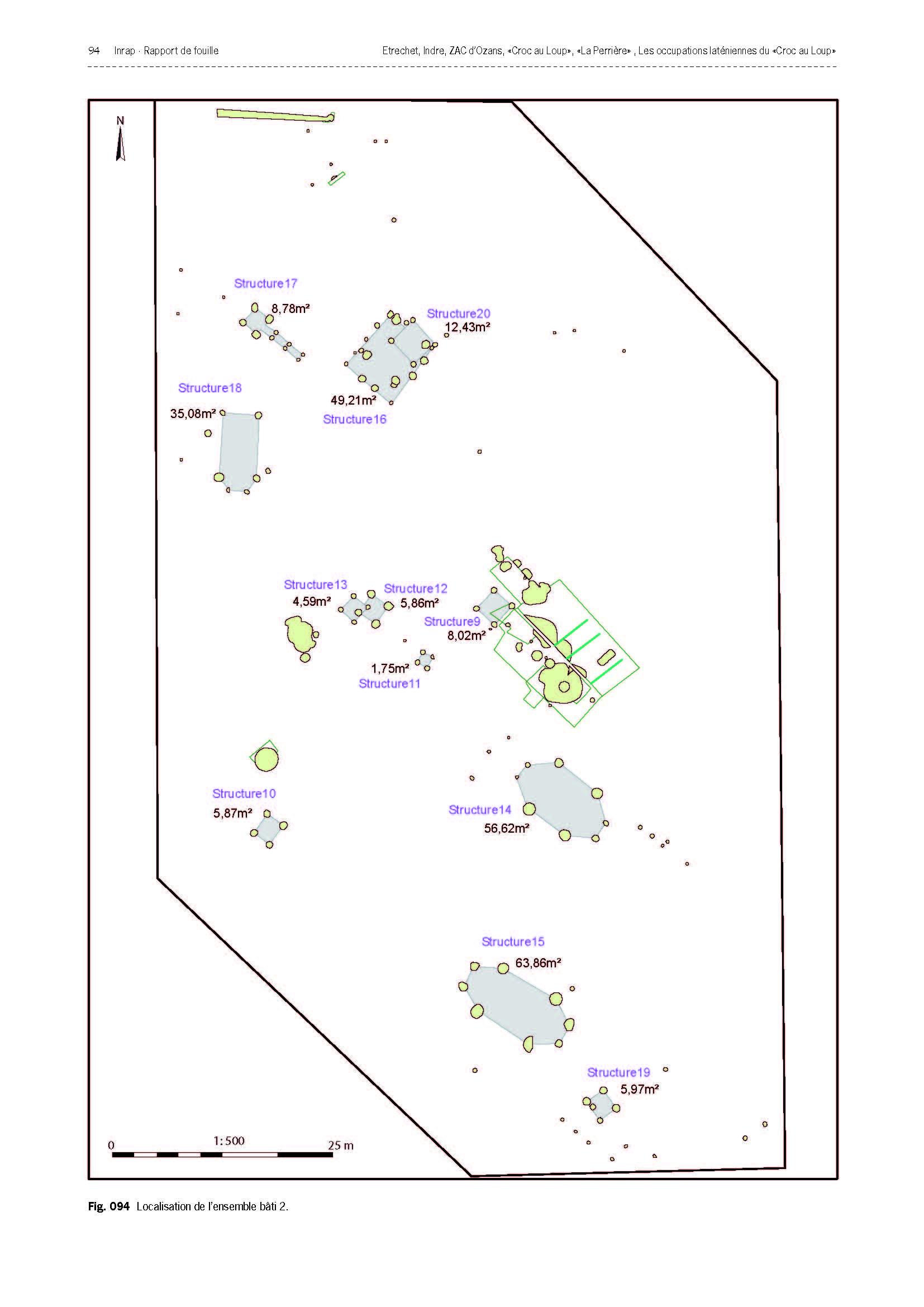 Les quelques éléments présents sur le site 028 (Fig. 23) sont du mobilier céramique récolté en surface de décapage et un bâtiment fondé sur quatre poteaux associé à une palissade dont la fonction reste indéterminée.