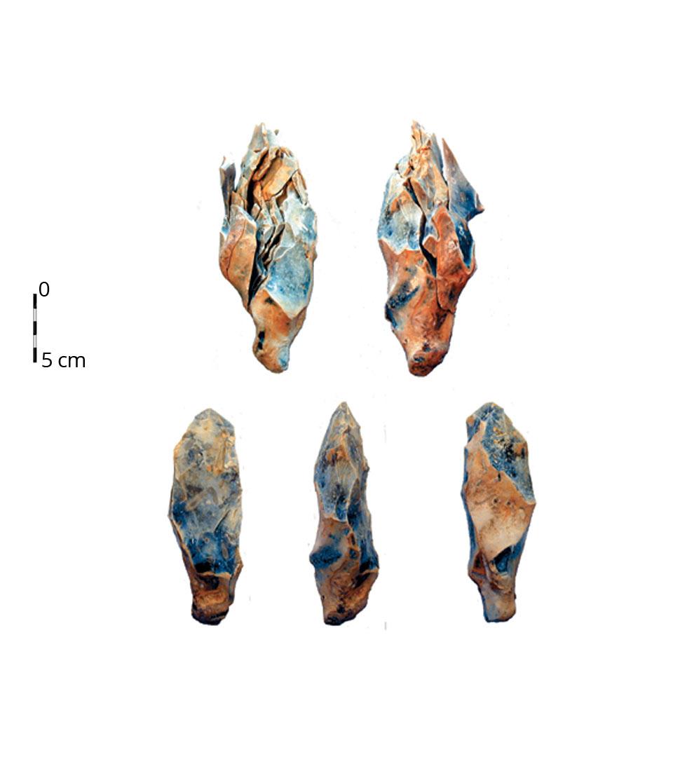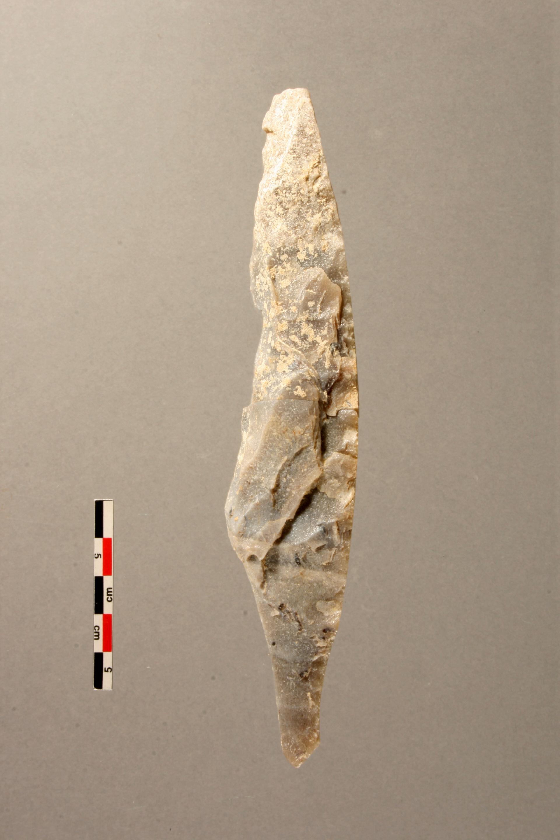 Paris « 62 rue Henry-Farman », locus 3 : outil prismatique en grès quartzite du Mésolithique moyen (aux environs de 8500-7800 avant J.-C.).