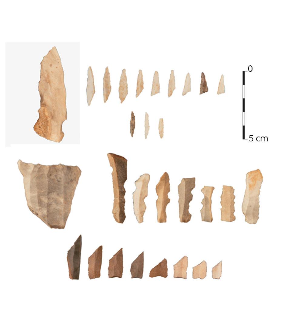 La culture matérielle des Hommes du Mésolithique est principalement constituée d’outils en silex ou en matière dure animale. Le végétal, largement utilisé, est plus difficilement identifiable par les archéologues, les gisements favorables à leur conservation étant plus rares.