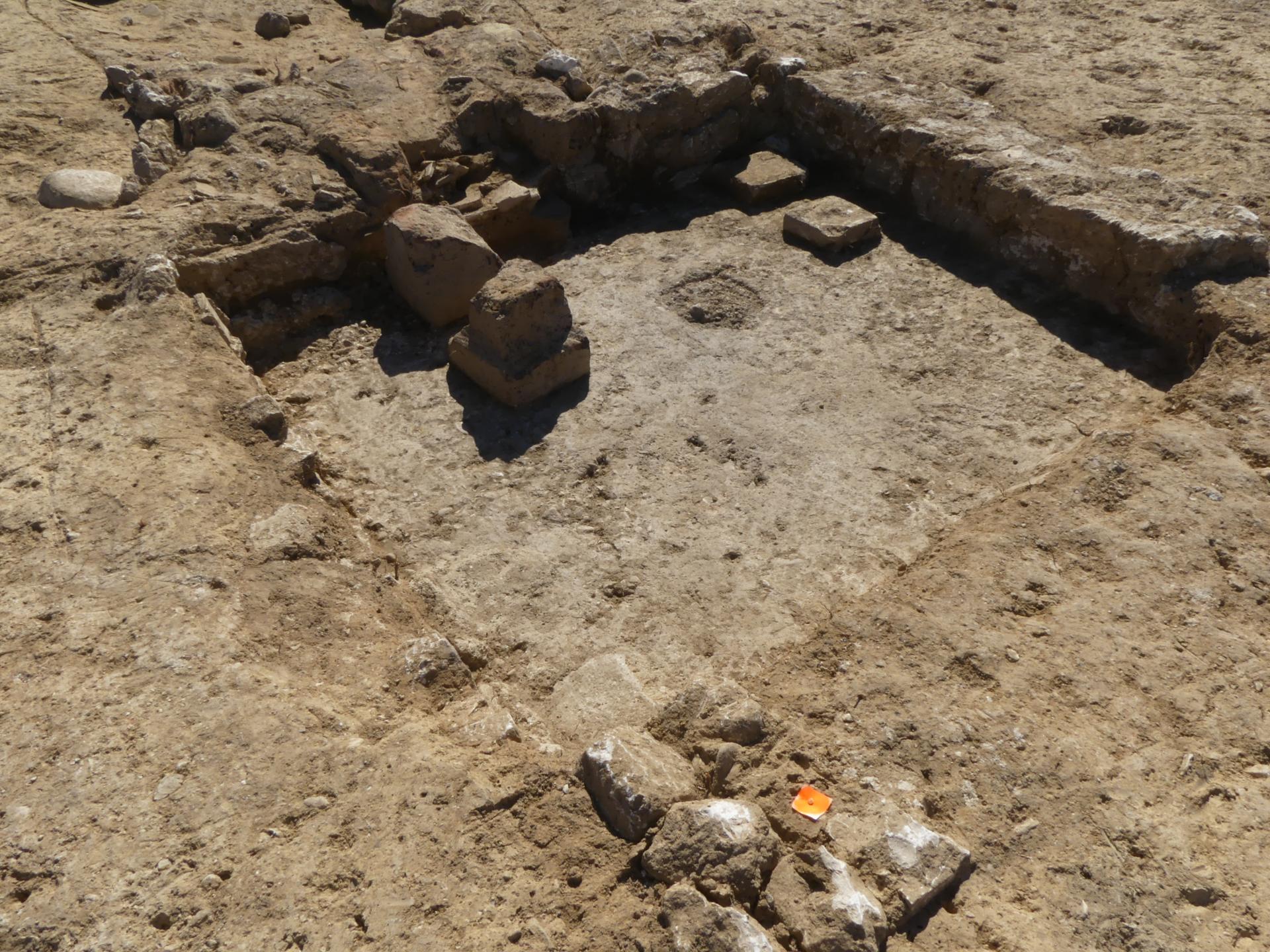 Vue de l’extension nord des bâtiments au Ve siècle, avec des fondations liées au mortier de chaux.