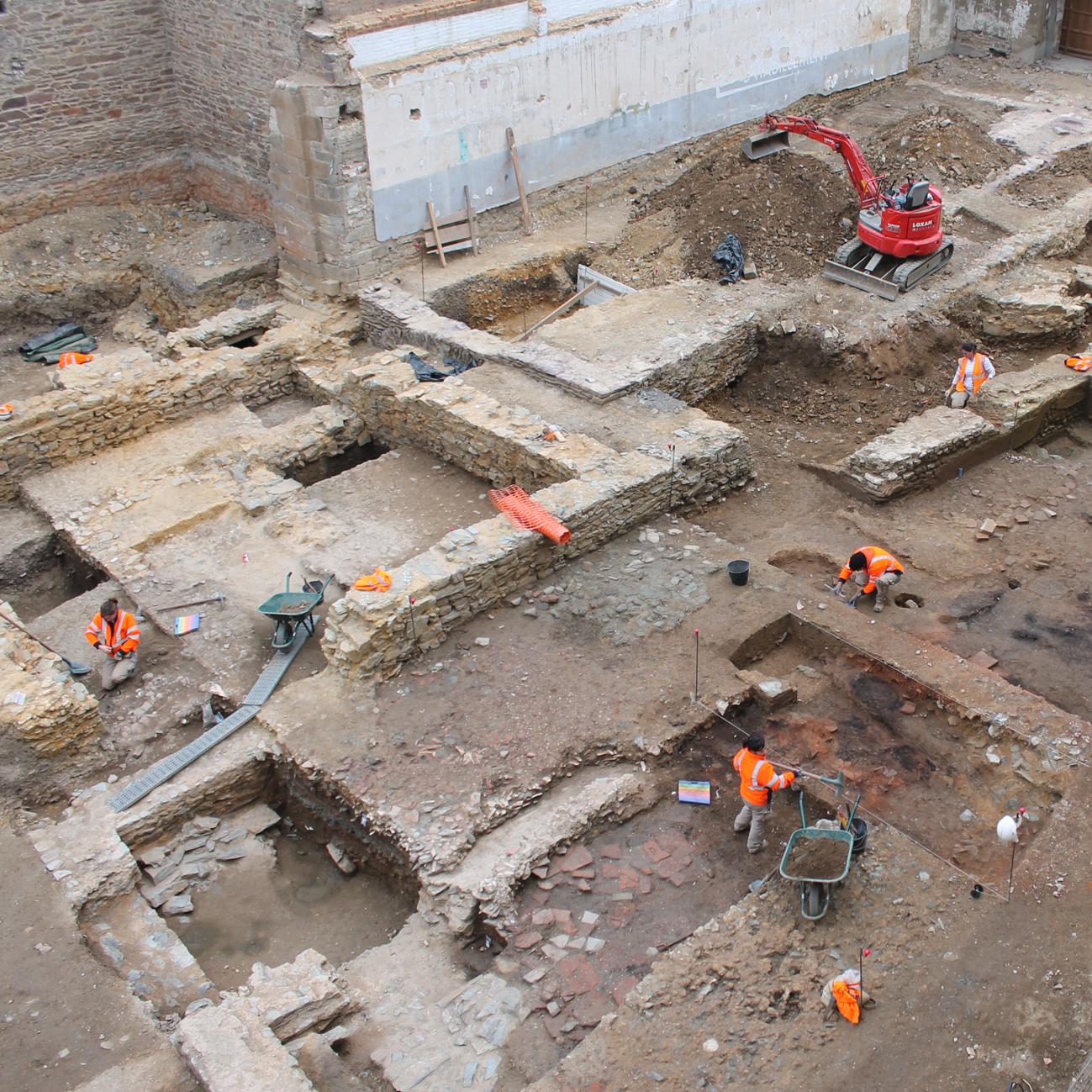 Une équipe d'archéologues de l'Inrap fouille, depuis décembre 2011, le site du couvent des Jacobins à Rennes. Réalisée sur prescription de l'État (Drac Bretagne), à l'emplacement du futur centre des congrès de Rennes Métropole, cette fouille urbaine est l'une des plus importantes jamais menées dans l'Ouest de la France.