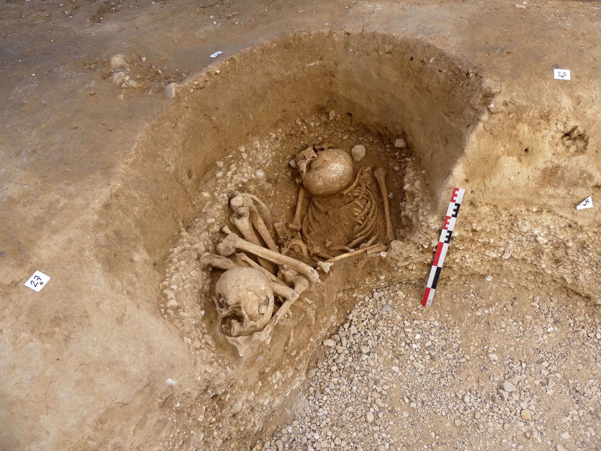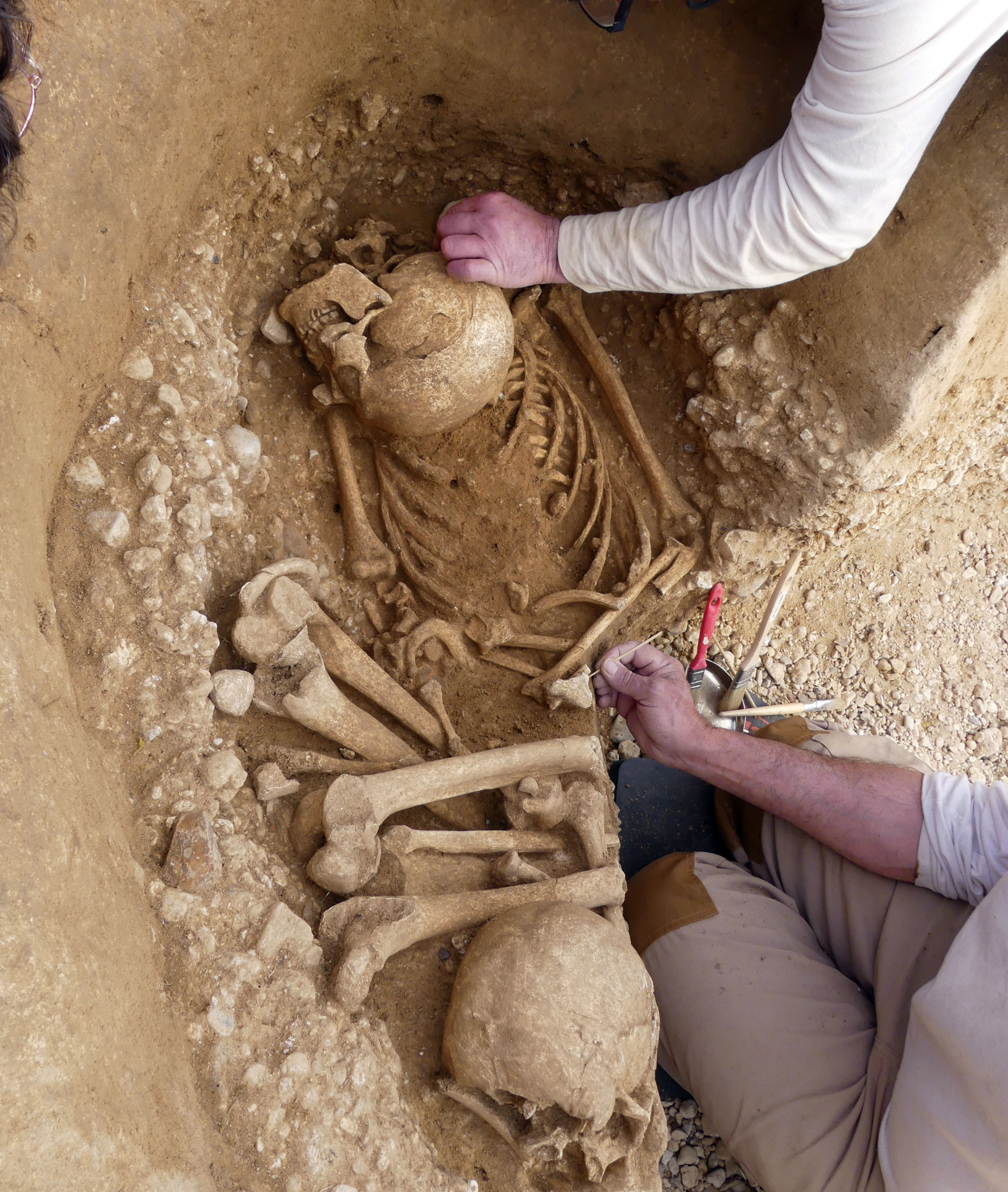 Au terme d’une fouille minutieuse, la position des ossements permettra de définir s’il s’agit d’un dépôt primaire ou secondaire. Le mode d’inhumation, en pleine terre ou dans un contenant périssable sera alors connu, ainsi que les éventuels remaniements des deux squelettes.