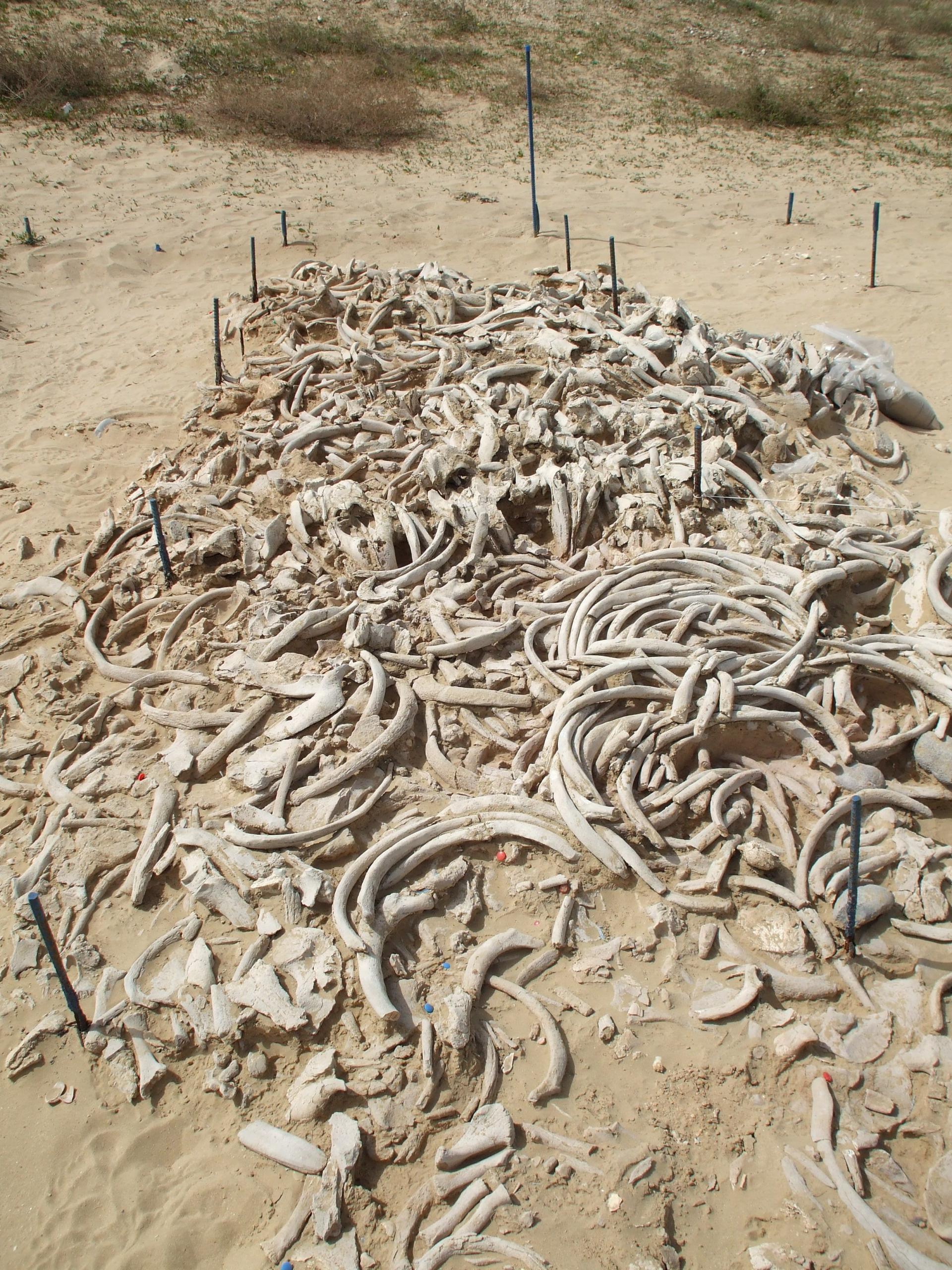 Les juvéniles, y compris de très jeunes dugongs, sont bien représentés dans l'amas. On observe aussi qu'aucun animal n'a été déposé entier dans la structure, de même qu'aucun quartier important. De plus, certaines parties anatomiques, comme les côtes, vertèbres ou membres, sont en net sous effectif, ce qui témoigne d'une sélection intentionnelle. Le dépôt de portions d'animaux à l'état frais est certifié par la présence de membres en connexion. Aujourd'hui, les os présentent les stigmates d'une longue exposition au soleil et au vent.
