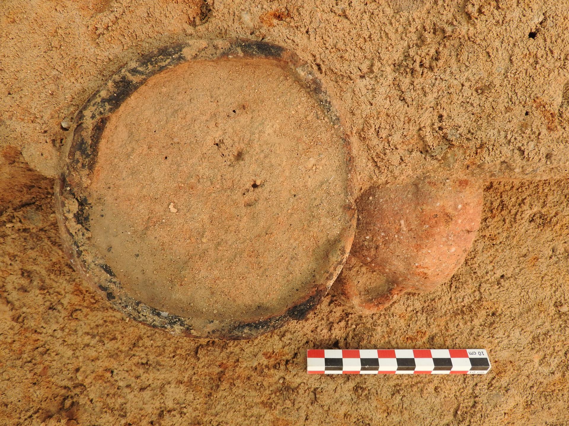 Lot de deux céramiques retrouvées entières dans le fossé de l’un des cercles funéraires de l’âge du Bronze.