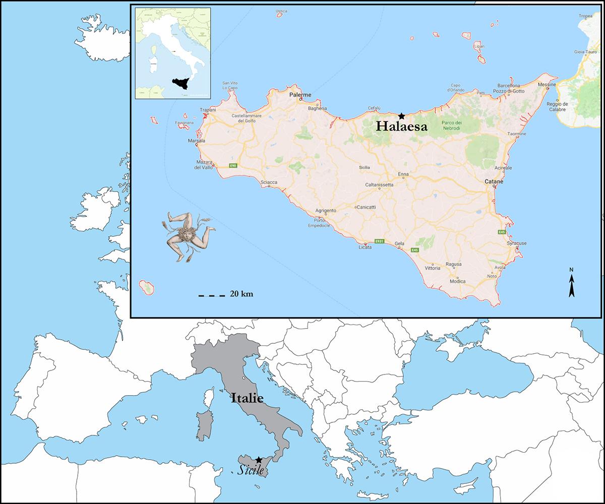 Localisation générale d’Halaesa sur une carte de la Sicile.