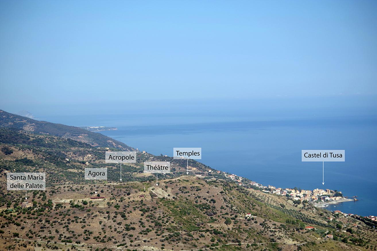 Michela Costanzi : Le seul auteur qui ait parlé de la fondation d’Halaesa est Diodore de Sicile au livre XIV (16, 4) de sa Bibliothèque historique. Il rapporte deux traditions : selon la première, la cité aurait été fondée par les Carthaginois, en -405. L’autre tradition, la plus suivie, raconte que la cité fut fondée par un roi sicule, Archonidès d’Herbita, en 403/402 avant notre ère. À cette époque, le nord-est de la Sicile était habité par les Sicules et, dans la région où Halaesa sera fondée, existe un petit royaume sicule. Avec sa capitale à Herbita, il est sous le contrôle d’une dynastie dont nous connaissons au moins deux rois : Archonidès II qui fonde Halaesa et Archonidès Ier, son grand-père, qui avait participé à une autre fondation (celle de Kalé Aktè, en -446, avec le chef sicule Doukétios). L’emplacement exact d’Herbita n’est pas connu, mais selon les recherches les plus récentes, elle devait se trouver dans les montagnes derrière Halaesa. C’est de là que part Archonidès II pour fonder la cité, sur la mer, après la guerre, puis la paix avec Denys de Syracuse qui encourage cette fondation. En effet, le tyran de Syracuse porte un grand intérêt à la côte nord de l’île qui s’ouvre sur la mer Tyrrhénienne. Fréquentée par les Carthaginois et les Romains, elle est un lieu stratégique. Et les Grecs n’ont pas encore de point de contrôle sur cette côte. C’est pour contrôler cet axe maritime que Denys de Syracuse, une fois allié aux Herbitaioi, appuie la fondation d’Halaesa. Pour la même raison, il fonde quelques années plus tard, en 396 avant notre ère, Tyndaris (Tindari) à 60 km à l’est.