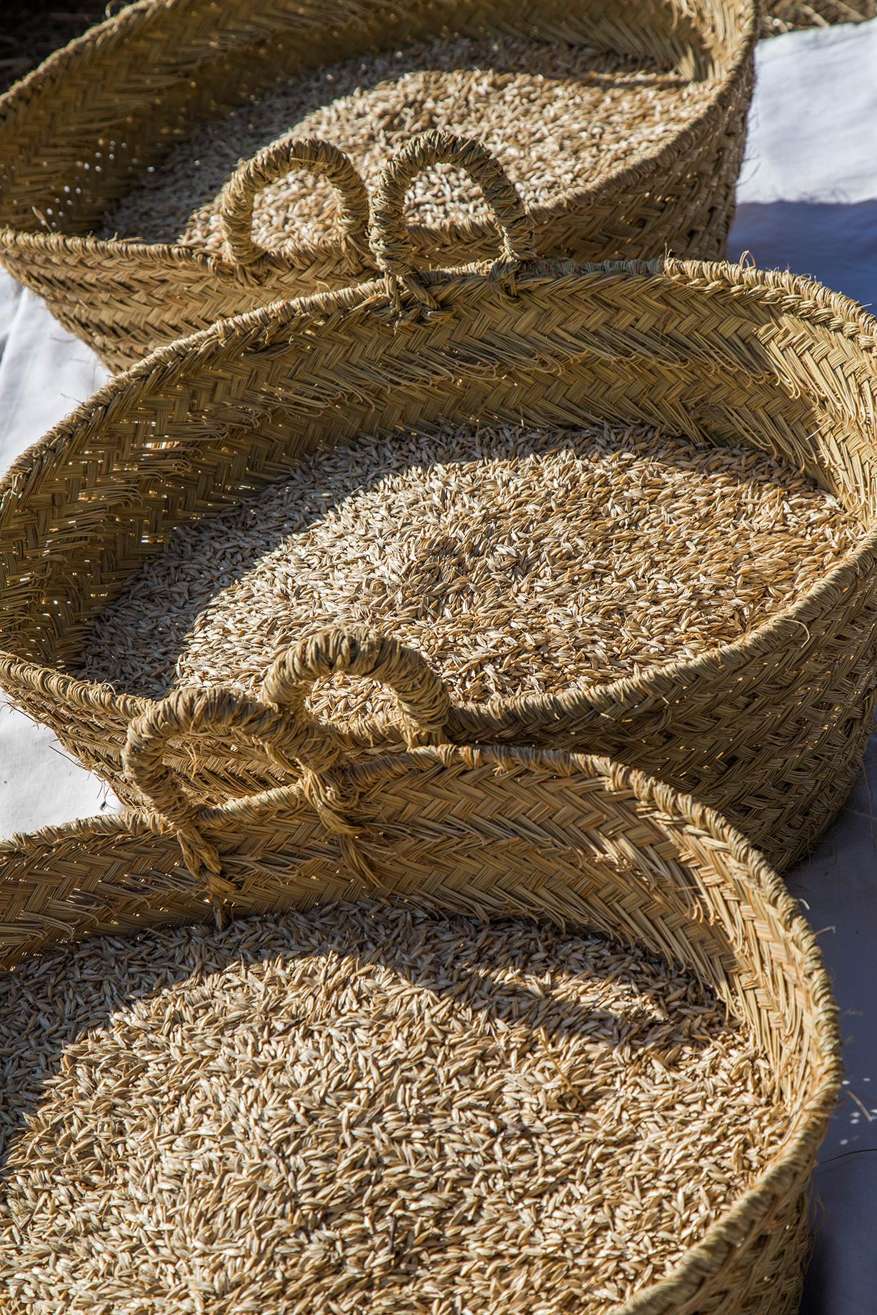 Préparation du stock d'engrain vêtu issu de l'agriculture biologique (petit épeautre) utilisé pour l'expérimentation d'ensilage.