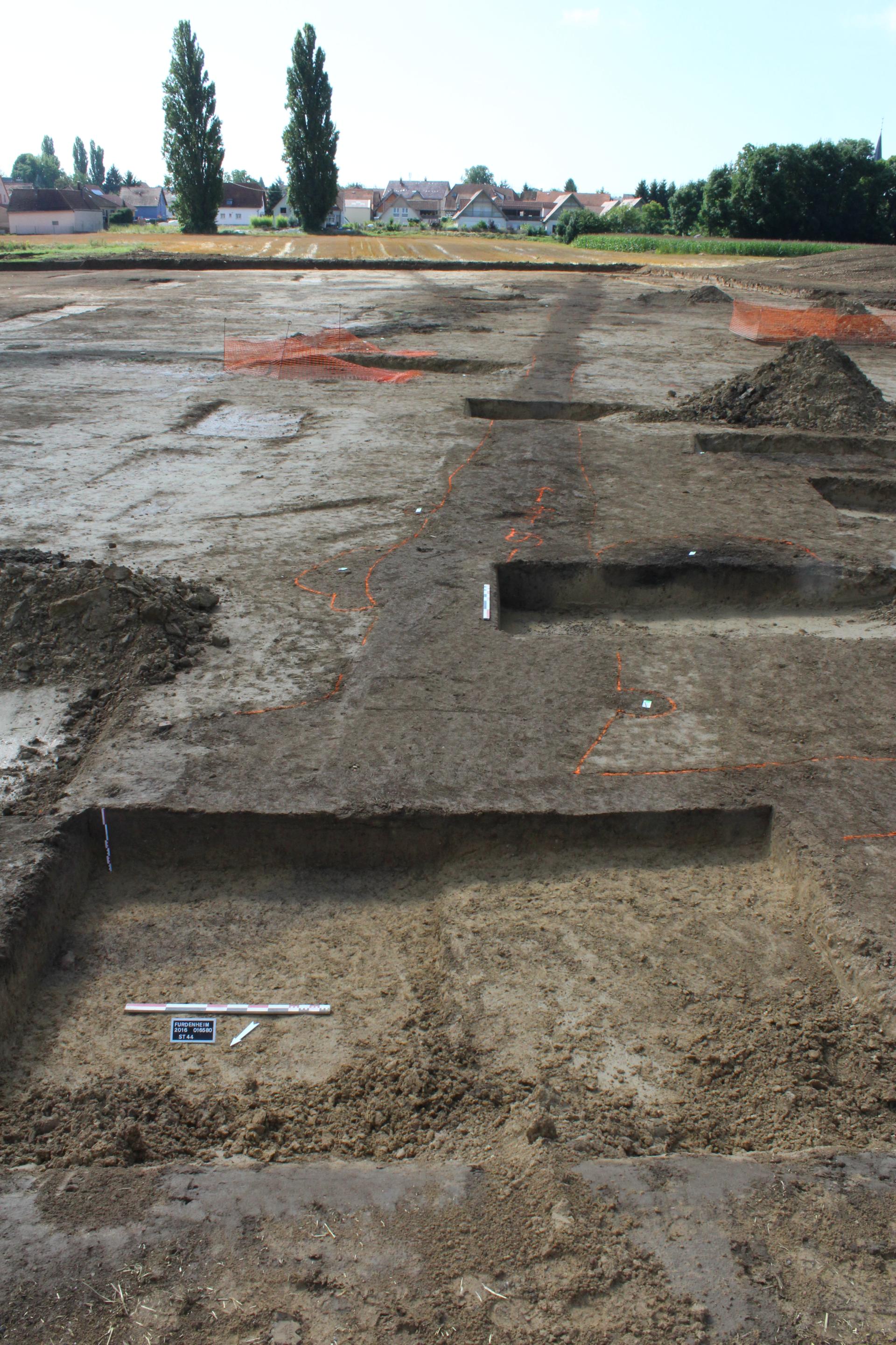 Dans le cadre d’un projet de lotissement réalisé par CM-CIC Aménagement foncier, l’Inrap a mené, de fin juillet à septembre 2016, des fouilles archéologiques préventives à Furdenheim. Prescrit par l’État (Drac Grand Est), le chantier fait face au complexe judo-basket dont la construction avait déjà permis la découverte, en 2013, d’une zone d’habitat de la fin de l’âge du Bronze et de la période gauloise. Cet été, les archéologues de l’Inrap ont mis au jour la suite de ce site et des vestiges allant jusqu’à la fin de la période gallo-romaine.