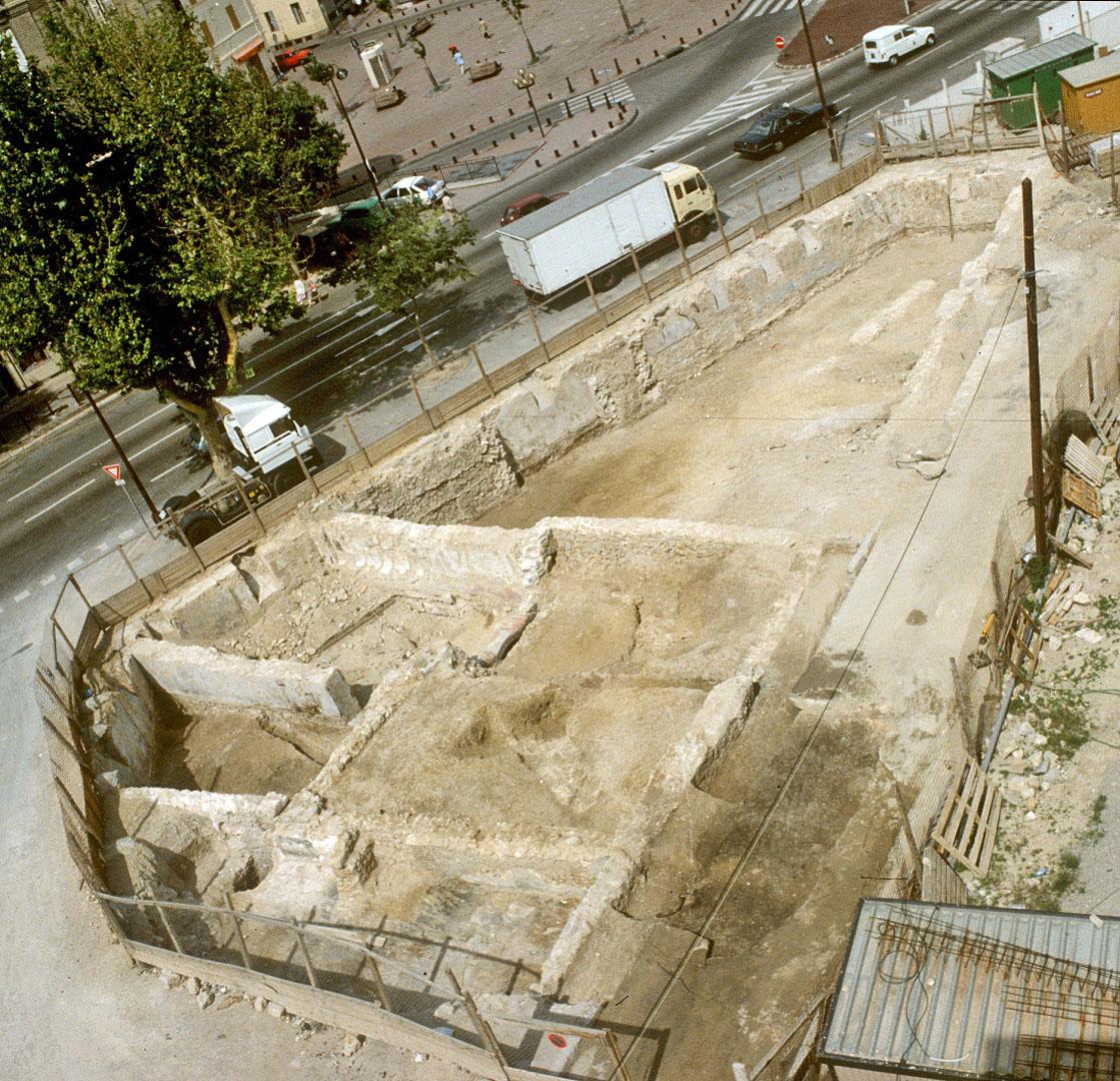 A Marseille, Bouches-du-Rhône, en 1987, lors de l'agrandissement de l'hôtel de Région, une fouille a été réalisée, sur le versant sud du vallon de la Joliette, dans un îlot de forme triangulaire d'une surface d'environ 500 m2.