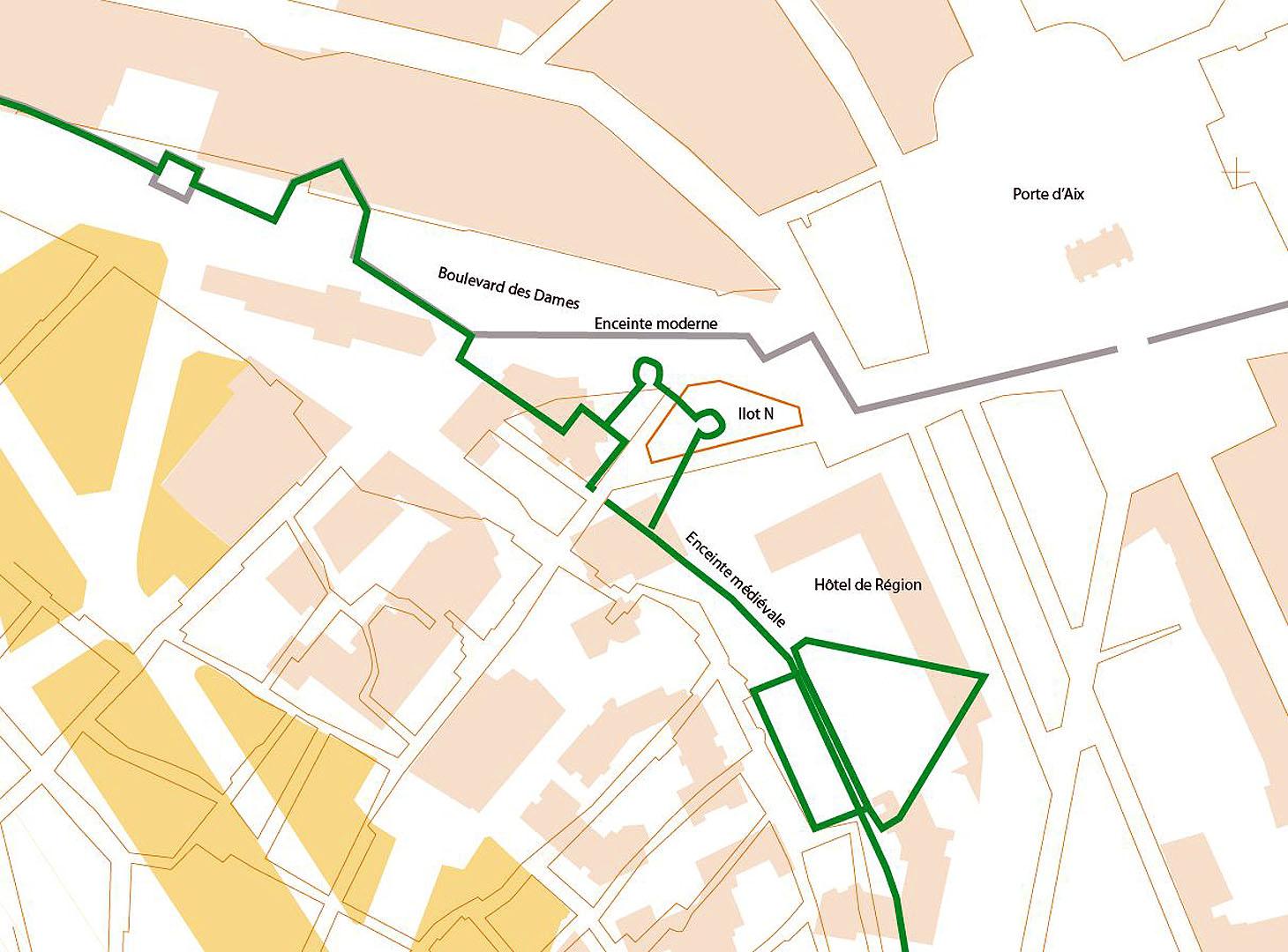 Elle a notamment révélé, sous les fondations du bâti moderne démoli dans les années 1980, l'existence d'un ouvrage de fortification ou « ravelin », destiné à protéger la porte de l'Annonerie. Depuis l'époque hellénistique, les enceintes de la ville de Marseille se sont succédé sur le flanc méridional du vallon de la Joliette.