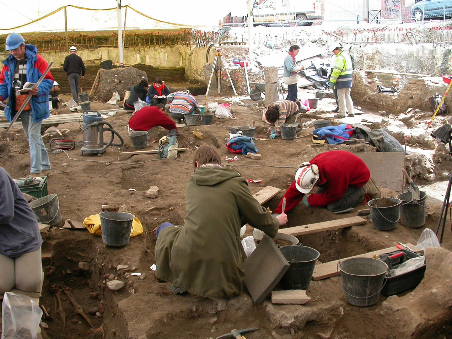 Vue générale de la fouille du cimetière médiéval des Hospitaliers de Saint-Jean.
