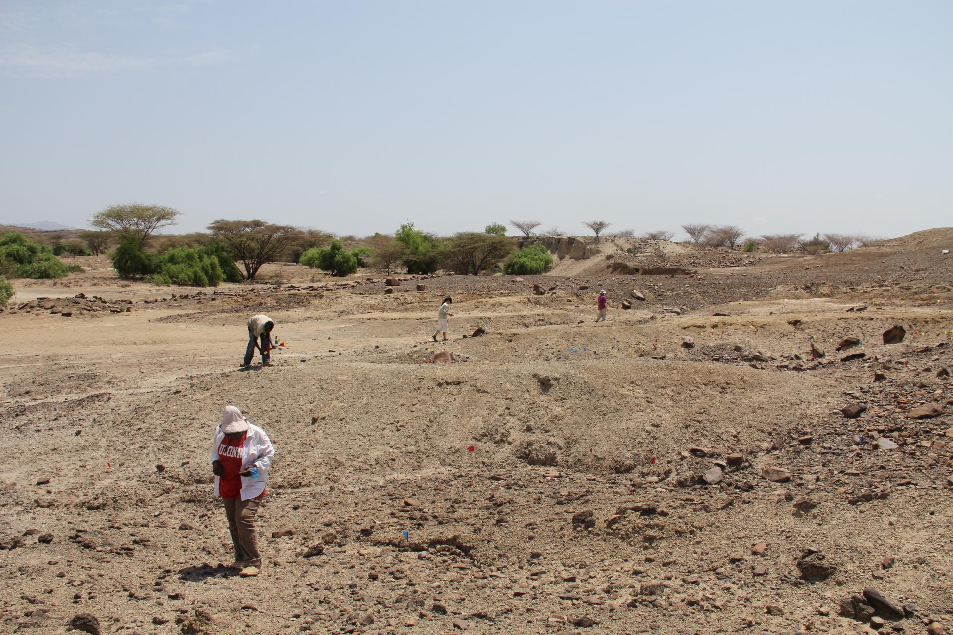 Prospections de la MPK sur les anciennes zones côtières du Lac Turkana, datées vers 2.2 Millions, à 8 km à l’ouest du lac.