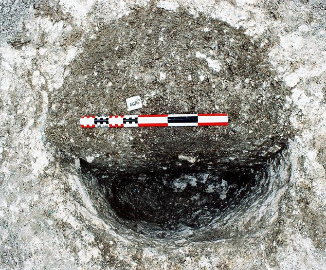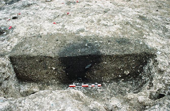 La première occupation, attribuable à la transition Hallstatt Final-La Tène ancienne (Ve-IVe s. avant notre ère), semble avoir été une occupation très ponctuelle. Elle est caractérisée par deux structures éloignées de plus d'une trentaine de mètres. L'une d'elles, une fosse, a livré une coupe complète, ce qui permet de s'interroger sur sa vocation : dépotoir domestique ou dépôt volontaire ?