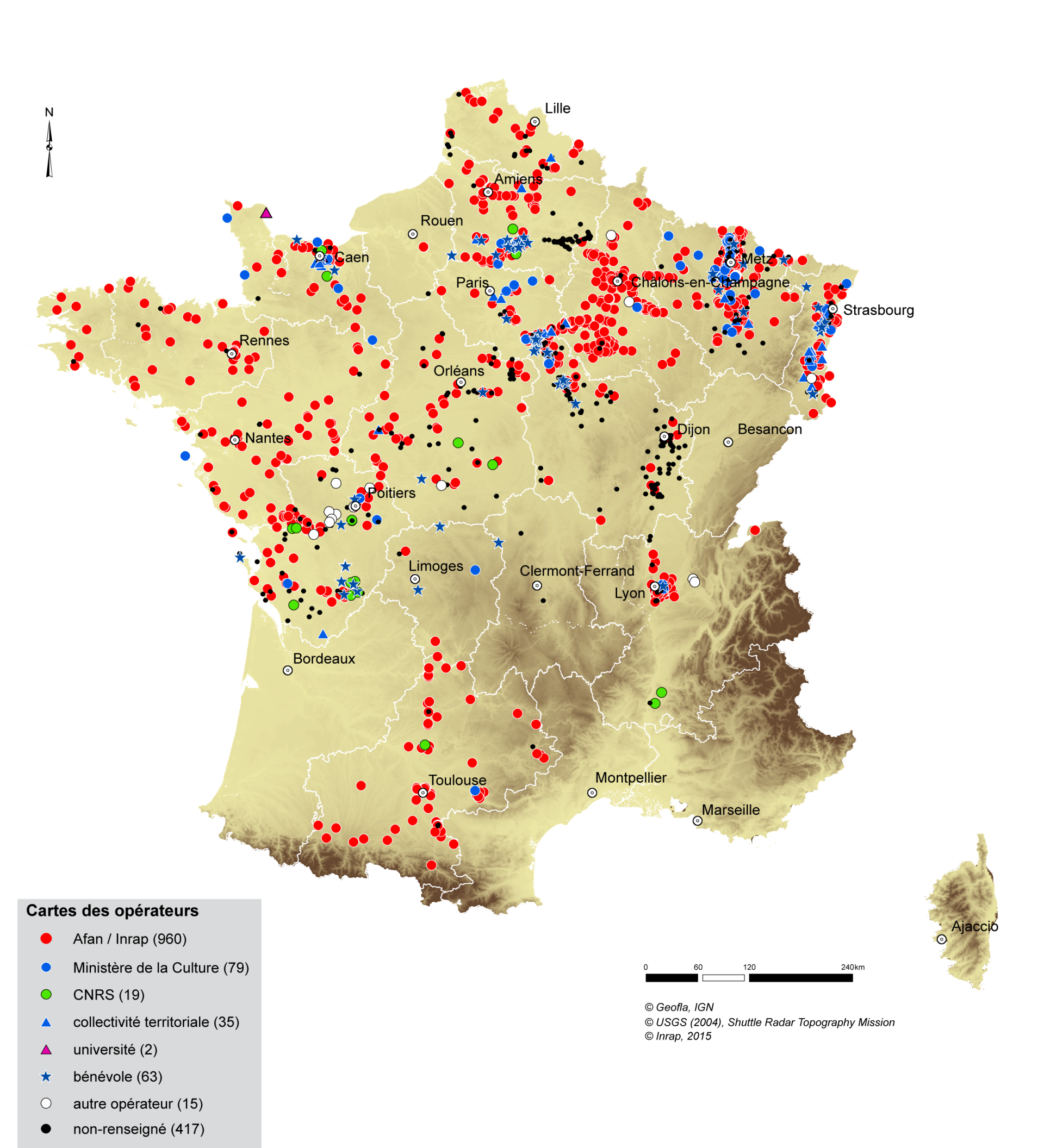 Enquête nationale âge du Bronze - Carte des opérateurs, état novembre 2011.