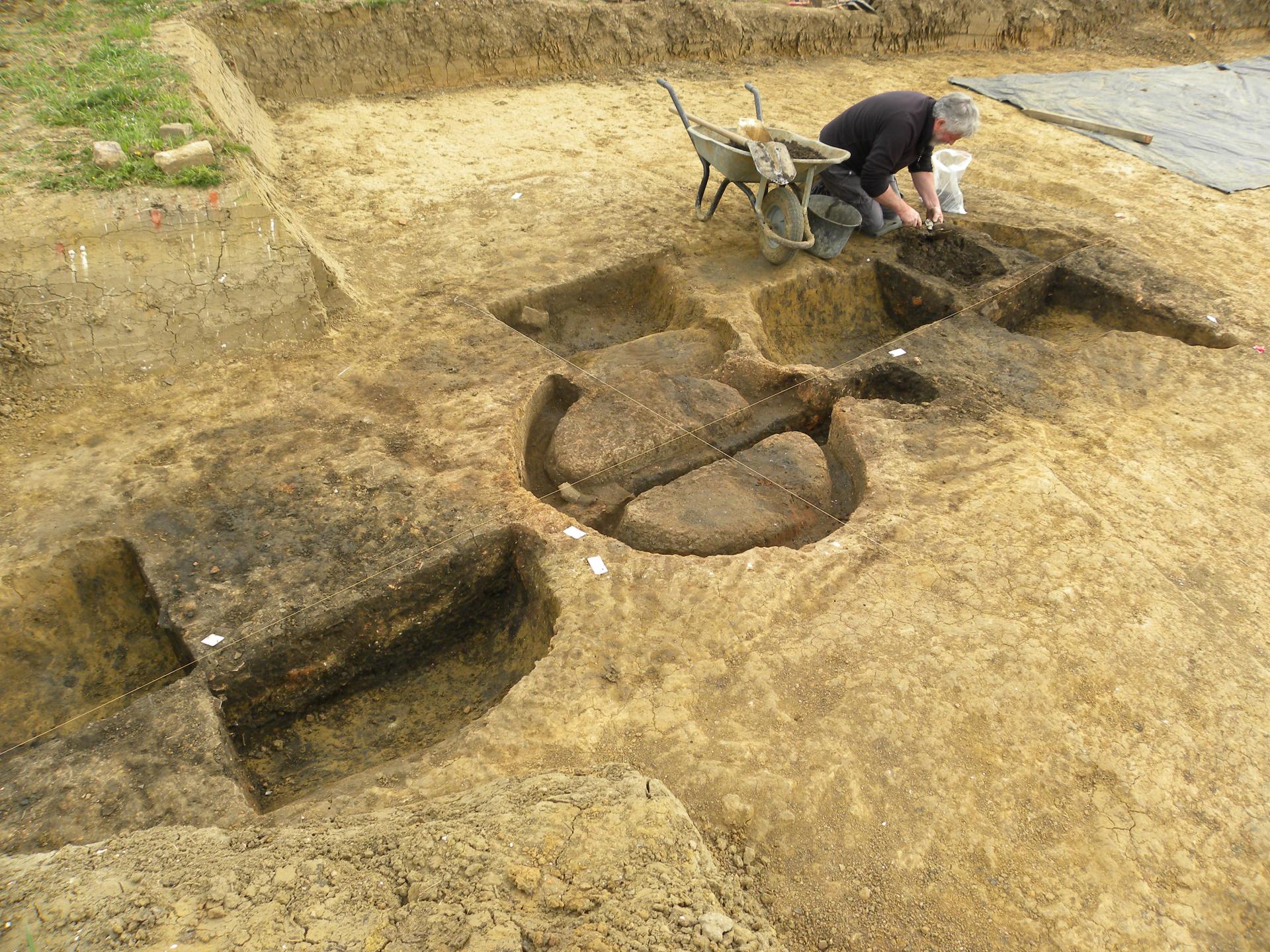 Sur le site, les archéologues ont également identifié la périphérie d’une agglomération et d’autres activités. Ainsi, il a été dégagé un four à chaux. La craie dont les gisements sont à moins de 2,5 km est chauffée pour obtenir de la chaux qui est utilisée dans la construction.