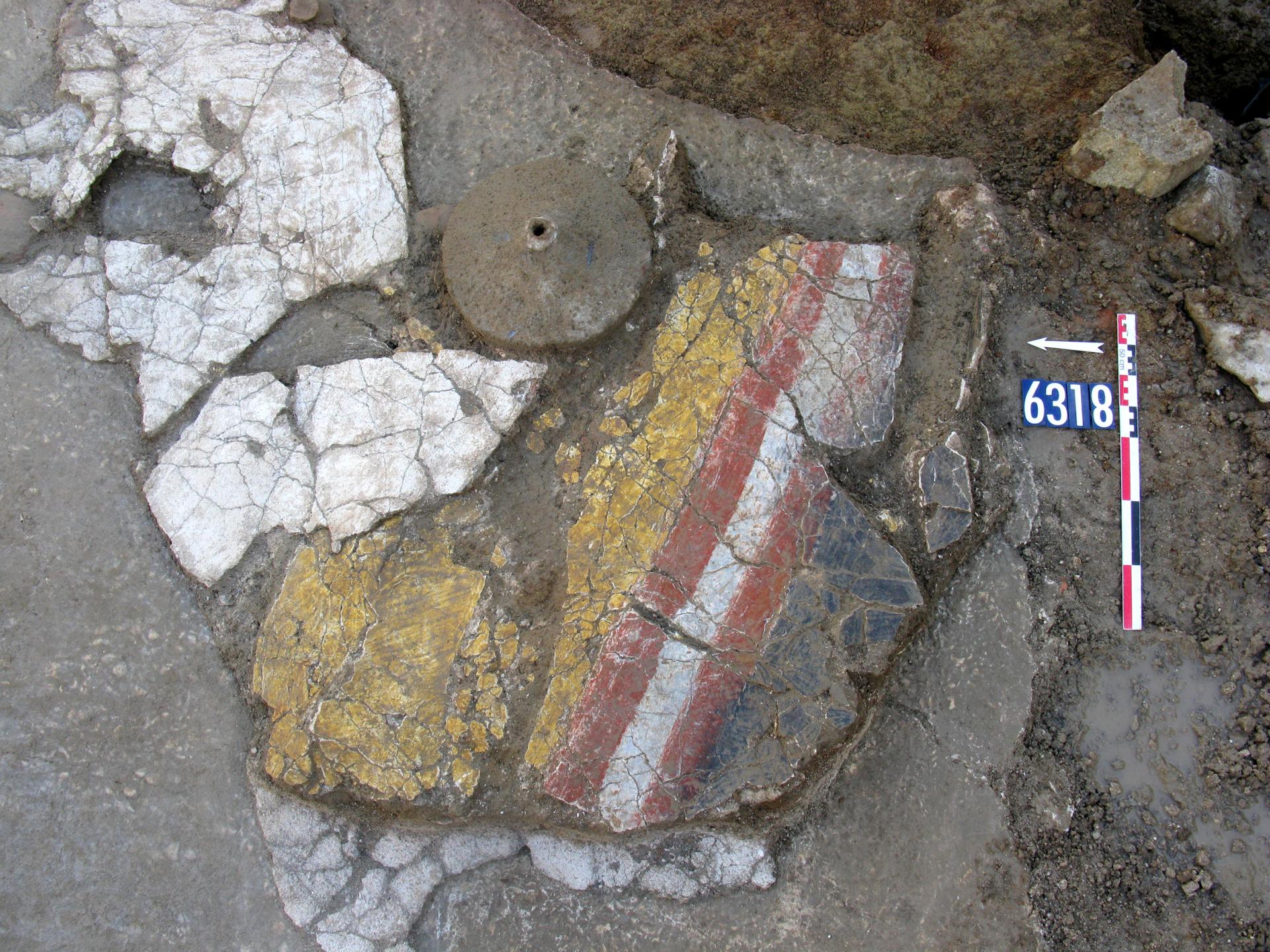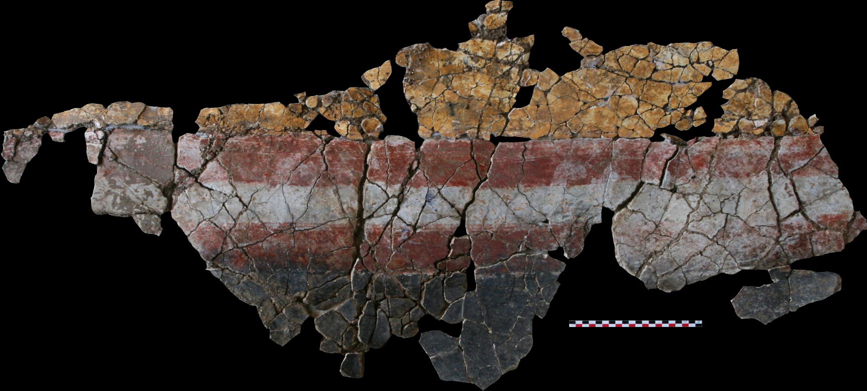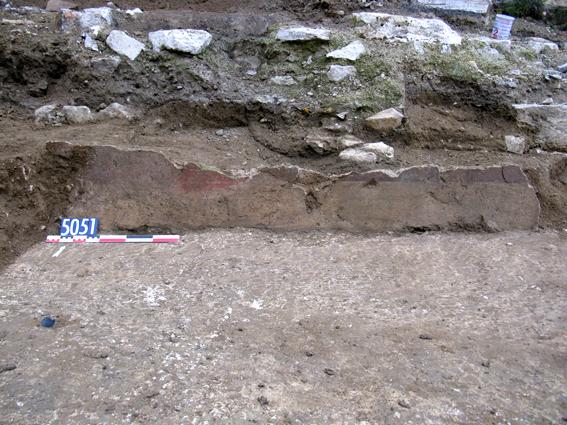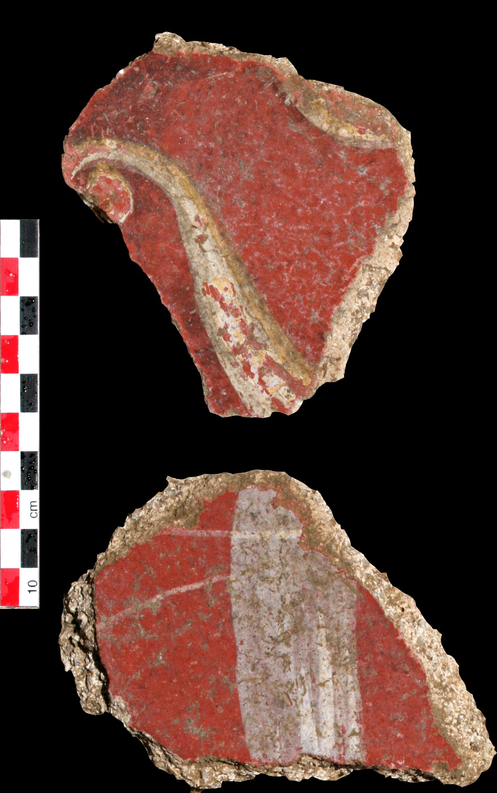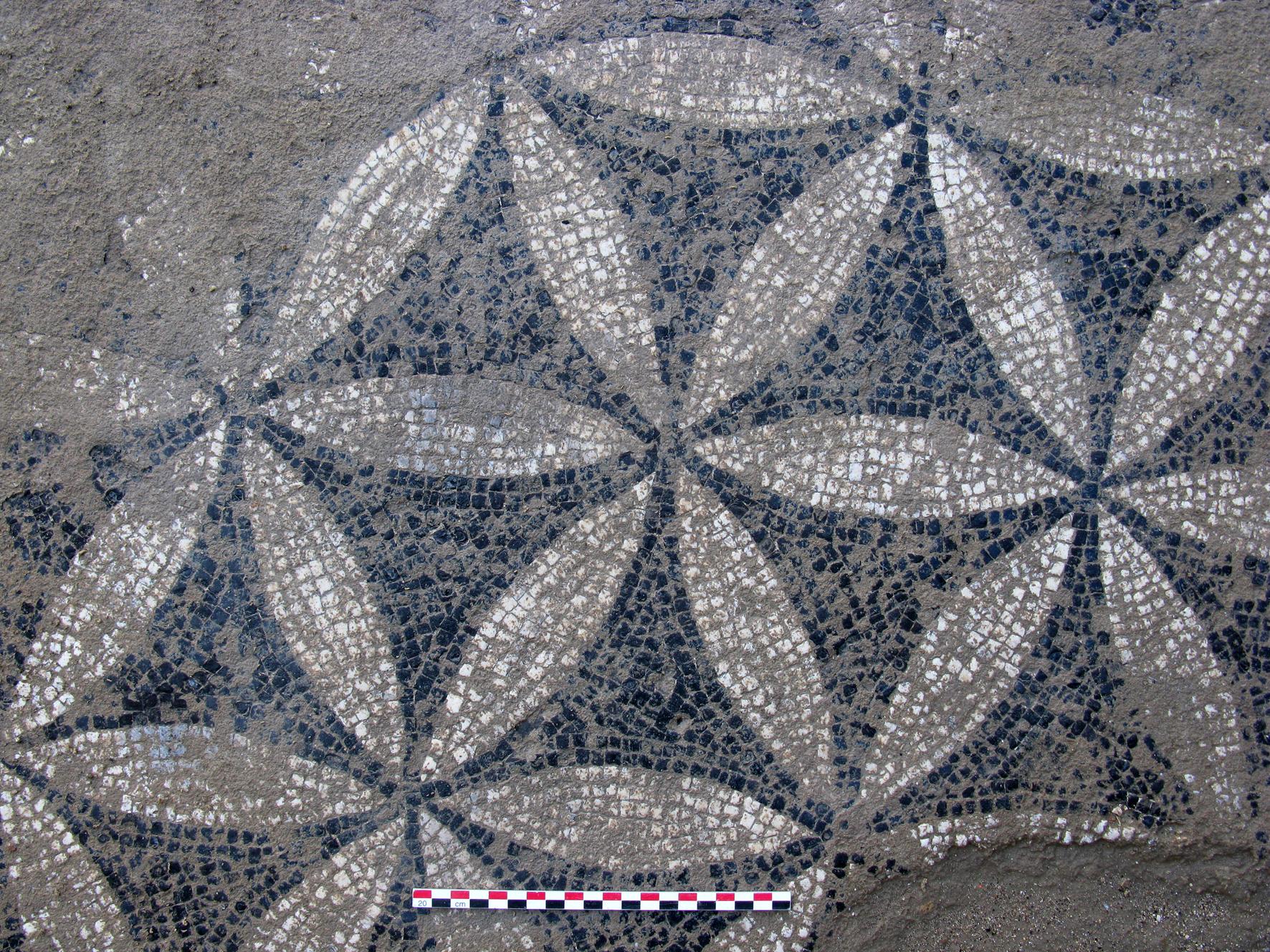 À l'est, l'occupation est différente et n'a révélé aucune construction en dur, excepté en limite sud du site où apparaît un long couloir mosaïqué.