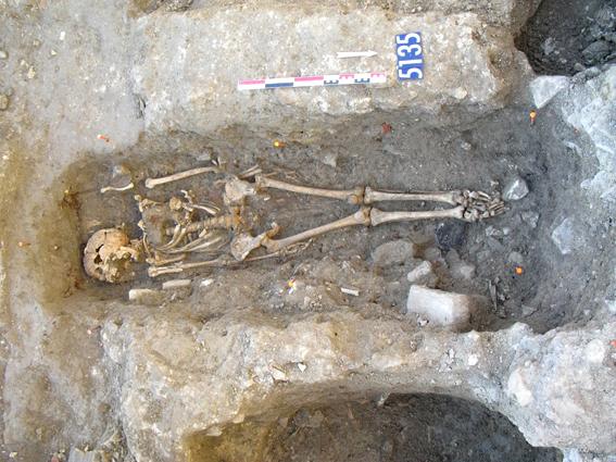 Plus d'une dizaine de sépultures ont été recensées à proximité de ces constructions. Datées lors du diagnostic des XVIIe-XVIIIe siècles, des analyses au carbone 14 préciseront la nature de leur relation avec les bâtiments religieux voisins détruits au XVIe siècle.