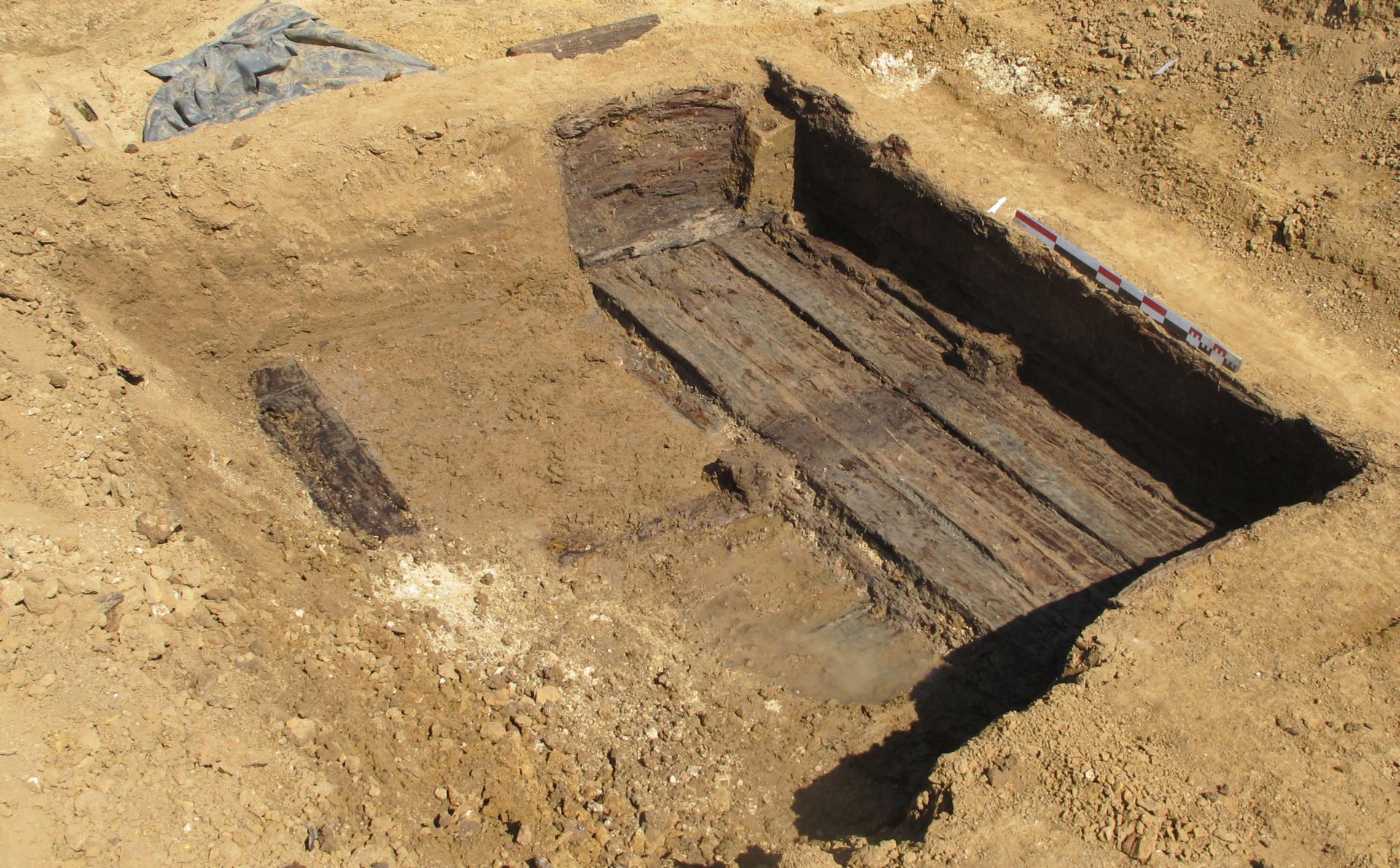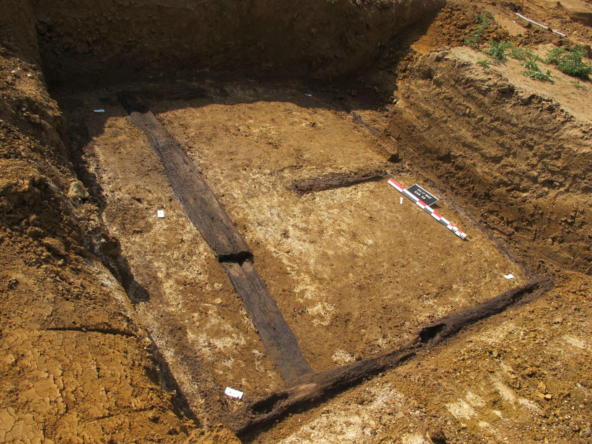 Sur une partie de l’emprise, les vestiges s’inscrivent principalement sur un axe Sud-est/Nord-Ouest, selon un linéaire ordonné par deux tranchées dont la principale dessert un ensemble de structures en creux, de plan rectangulaire, résolument tournées vers le Nord-est.