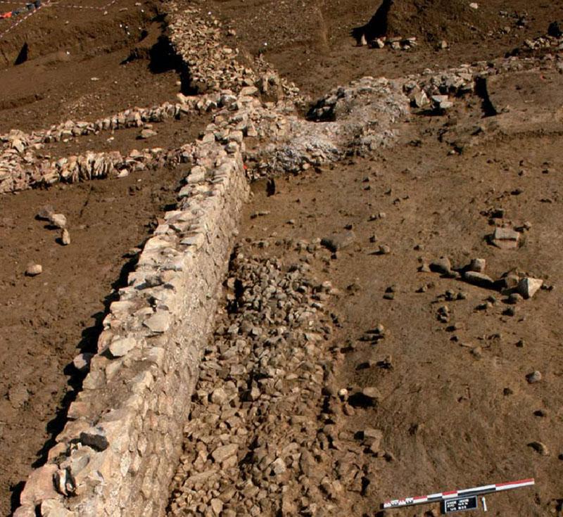 Les résultats des fouilles de 2006 et 2007 révèlent un ensemble de bâtiments de style italique (de l'Italie du sud) implantés vers 10-20 av. J.-C., de près de 4 400 m2. Cet ensemble de bâtiments d'implantation originale subira extension et récession jusqu'au VIIe siècle apr. J.-C., date à laquelle les terrains sont délaissées, entraînant leur abandon.