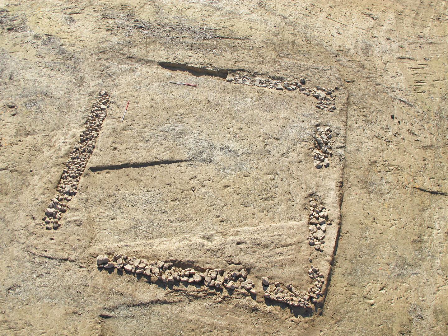 Enfin, sur la hauteur, un peu plus vers le sud, les restes d'un bâtiment de plan carré aux fondations empierrées ont été retrouvés. Il pourrait s'agir d'un petit temple lié au domaine.