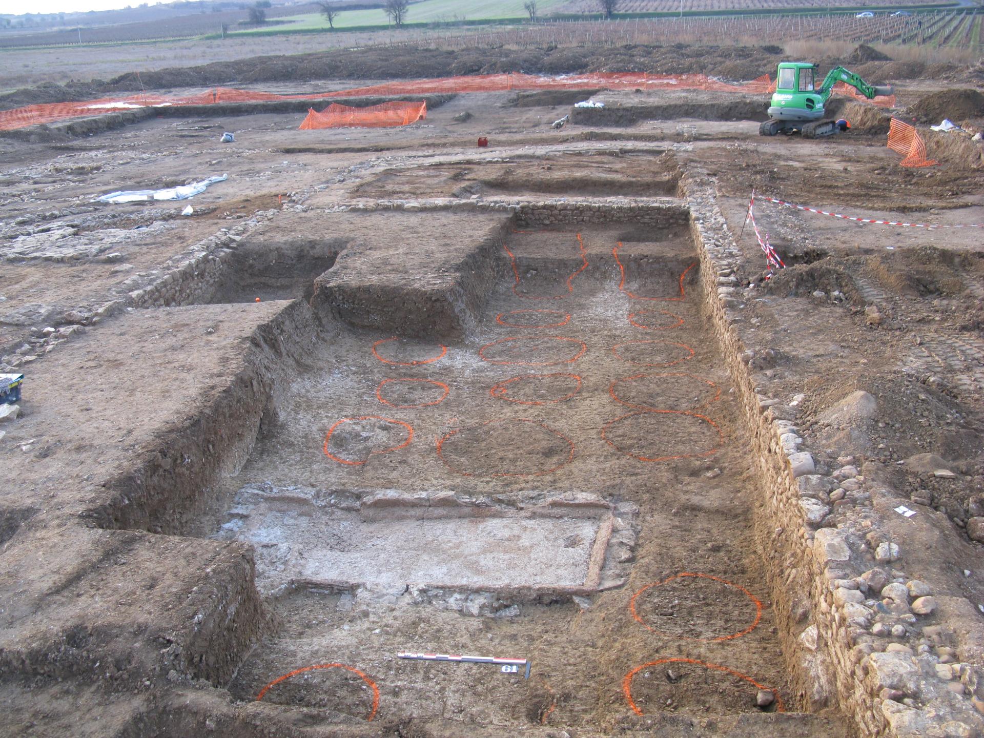 . son système agraire (vignoble et productions fruitières et horticoles) sera précisé grâce à des milliers de macrorestes issus du comblement de deux puits ;