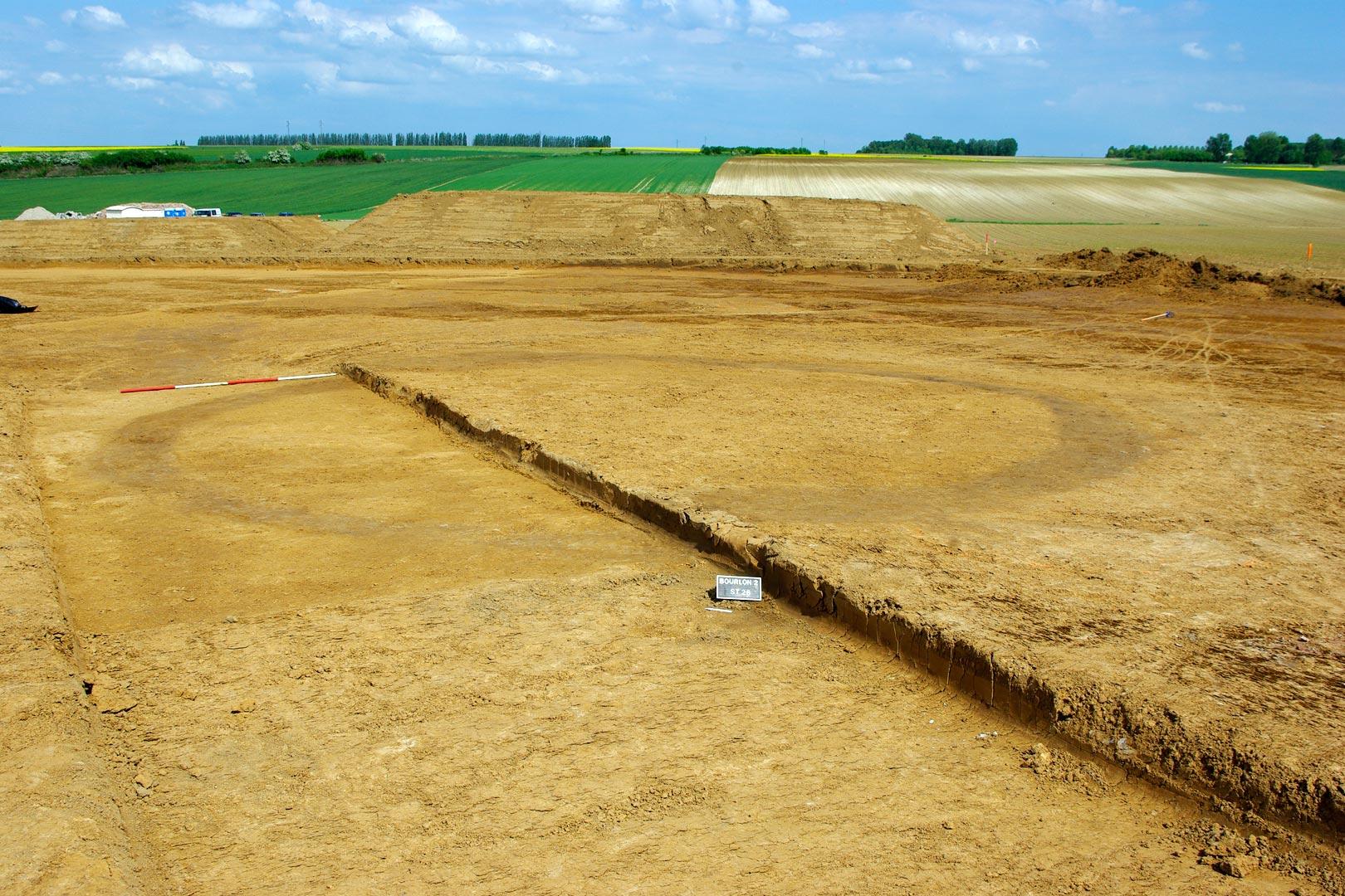 Les premiers témoignages probants d'une occupation humaine se traduisent ici par la présence d'un monument funéraire de l'âge du Bronze ; seul est conservé le fossé circulaire qui retenait le tertre dans lequel une tombe, aujourd'hui disparue, était ménagée. Ce lieu de sépulture est longtemps demeuré visible, comme le suggère la disposition des vestiges plus récents qui ont, de toute évidence, épargné cette zone funéraire.