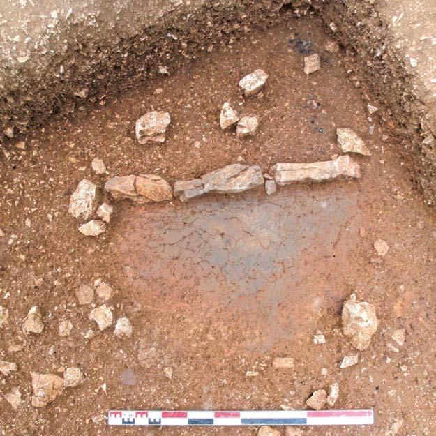 Plusieurs indices révèlent l'existence d'un atelier dans lequel étaient travaillés le bronze et le fer : des objets en cours de fabrications (plaques de tôle découpées, fibules...) et un petit foyer d'argile rubéfiée bordé de trois pierres verticales, sur lequel ont été découvertes plusieurs billes de coulées en bronze. Un grand bloc de calcaire, présentant de multiples incrustations métalliques, devait servir d'enclume. Des scories en fer ou résidus de métal, des battitures ou déchets de forge et des fragments de creusets - céramiques dans lesquelles était fondu le bronze - confortent l'hypothèse d'une activité métallurgique. La conservation des niveaux de sols raconte également l'organisation de la forge.