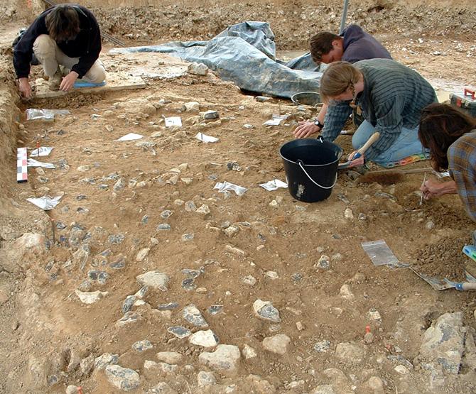 Sur une superficie de 500 m², une fouille horizontale mécanique et manuelle, avec contrôles stratigraphique (coupes) et taphonomique (secteur avec fouille fine, tests de tamisage), relevés en coordonnées cartésiennes, dessin et photo numérique, a été réalisée.