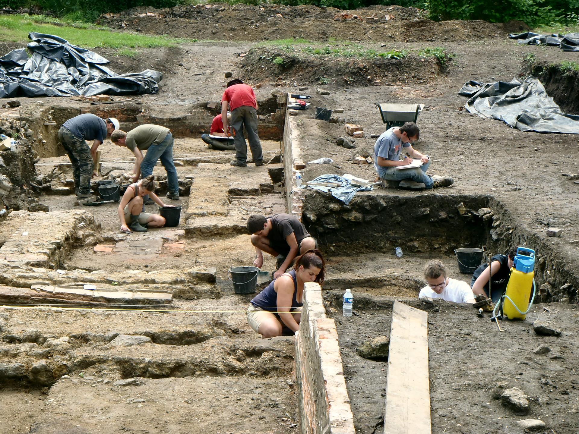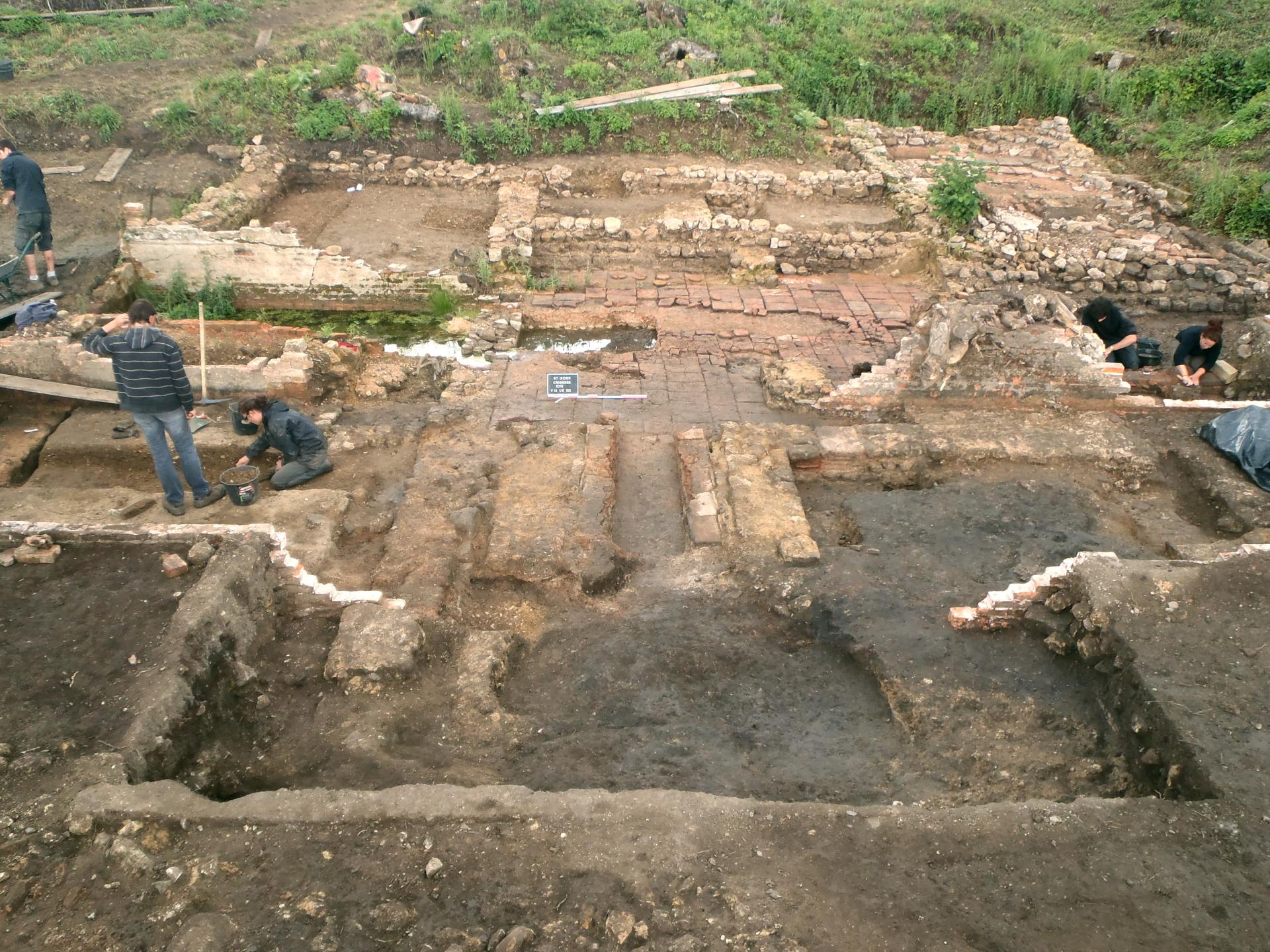 L'exploration du second secteur en bas de la pente, autour des salles balnéaires, est destinée à disposer de la puissance stratigraphique la plus importante possible. La conservation de sols antiques et de niveaux d'abandon a été constatée par les travaux des années 1960 et confirmée par nos campagnes de 2012 et 2013. Il s'agit donc du secteur le plus propice à la conservation d'aménagements aux fondations légères qui caractérisent les occupations domestiques mérovingiennes. Ici, il s'agira donc d'étudier les modalités d'abandon du bâtiment résidentiel créé au Haut Empire, et de sa succession. A cet égard, la recherche d'habitations mérovingiennes susceptibles d'appartenir à l'élite inhumée aux Crassées et à La Tuilerie est la priorité.