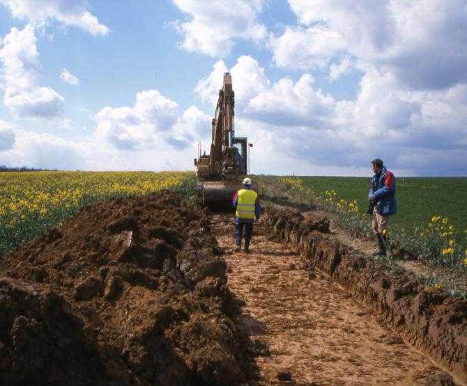 Suite à un diagnostic réalisé en avril 2001, et qui avait révélé entre autres une portion de voie antique et suggéré la présence probable d'une ferme indigène, un décapage exhaustif fut décidé.