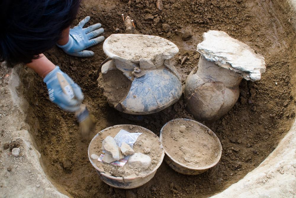 Dans 263 tombes en bon état de conservation, 687 vases ont été prélevés et fouillés en laboratoire, révélant des restes humains, des objets appartenant aux défunts, et des petits vases emboîtés dans les grands. Le nombre de vases découverts pourrait atteindre le millier, d'autant que ceux provenant des tombes endommagées par les labours restent à quantifier.