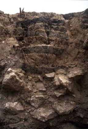 Vue en coupe d'un mur en adobe de la première moitié du Ve s. av. J.-C.