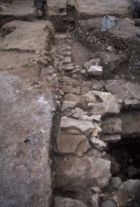 Mur de façade nord du podium grec archaïque, vue depuis l'ouest