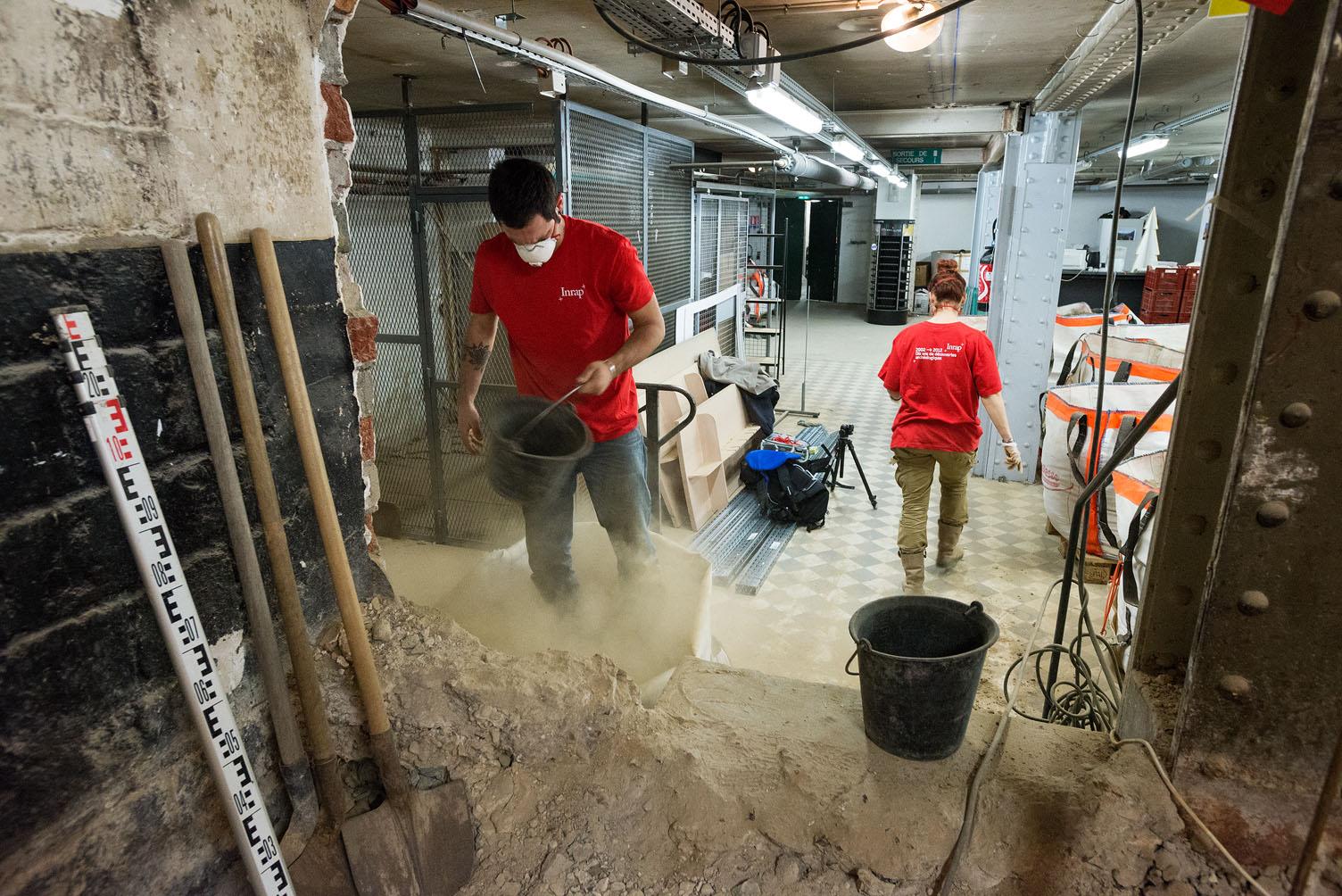 Une équipe de l'Inrap fouille jusqu'en mars 2015, sur prescription de l'État (Drac Île-de-France), 100 m² des caves du Monoprix Réaumur-Sébastopol à Paris (2e arr.) avant leur réhabilitation en lieux de stockage.