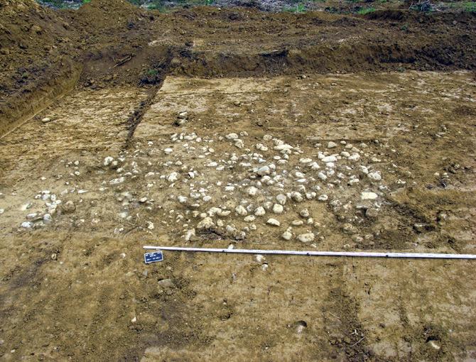 A Thèze, Pyrénées-Atlantiques, l'emprise soumise à la fouille se décompose en quatre grandes tranchées de 100 à 160 m de long à Thèze (rive droite du Luy de France), et deux de 120 m à Argelos (rive gauche), soit une superficie de 3 750 m2 environ.